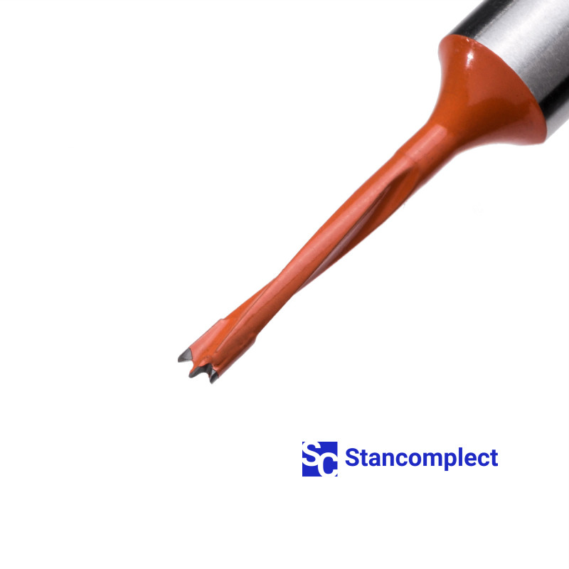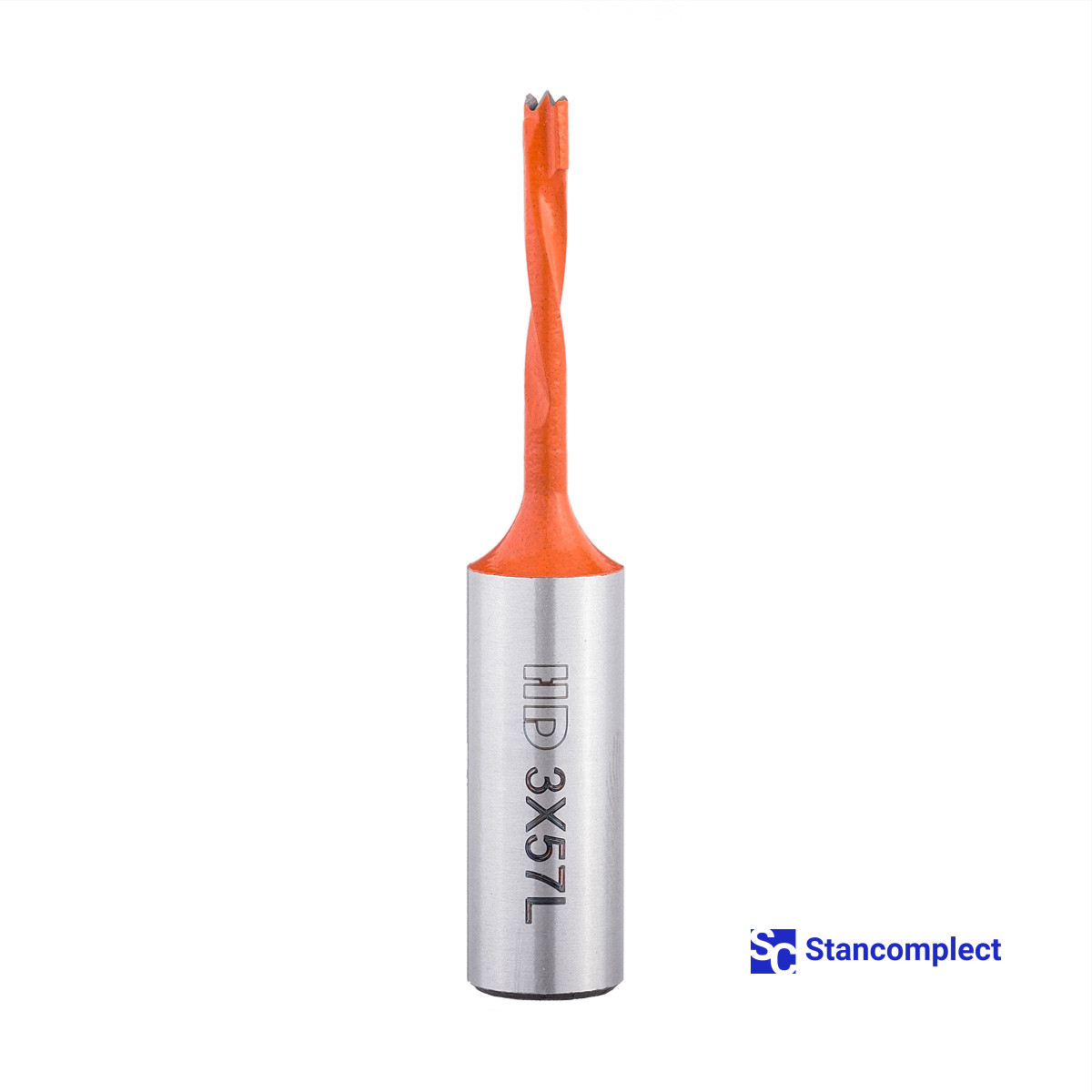 Blind hole drill bit HD d-3 mm, L-57 mm left with brazed plate (110 series). This drill bit is excellent for drilling blind holes in workpieces made of: MDF, chipboard, chipboard, solid wood, softwood and plywood.