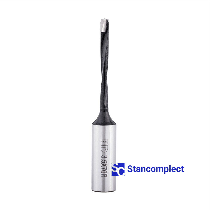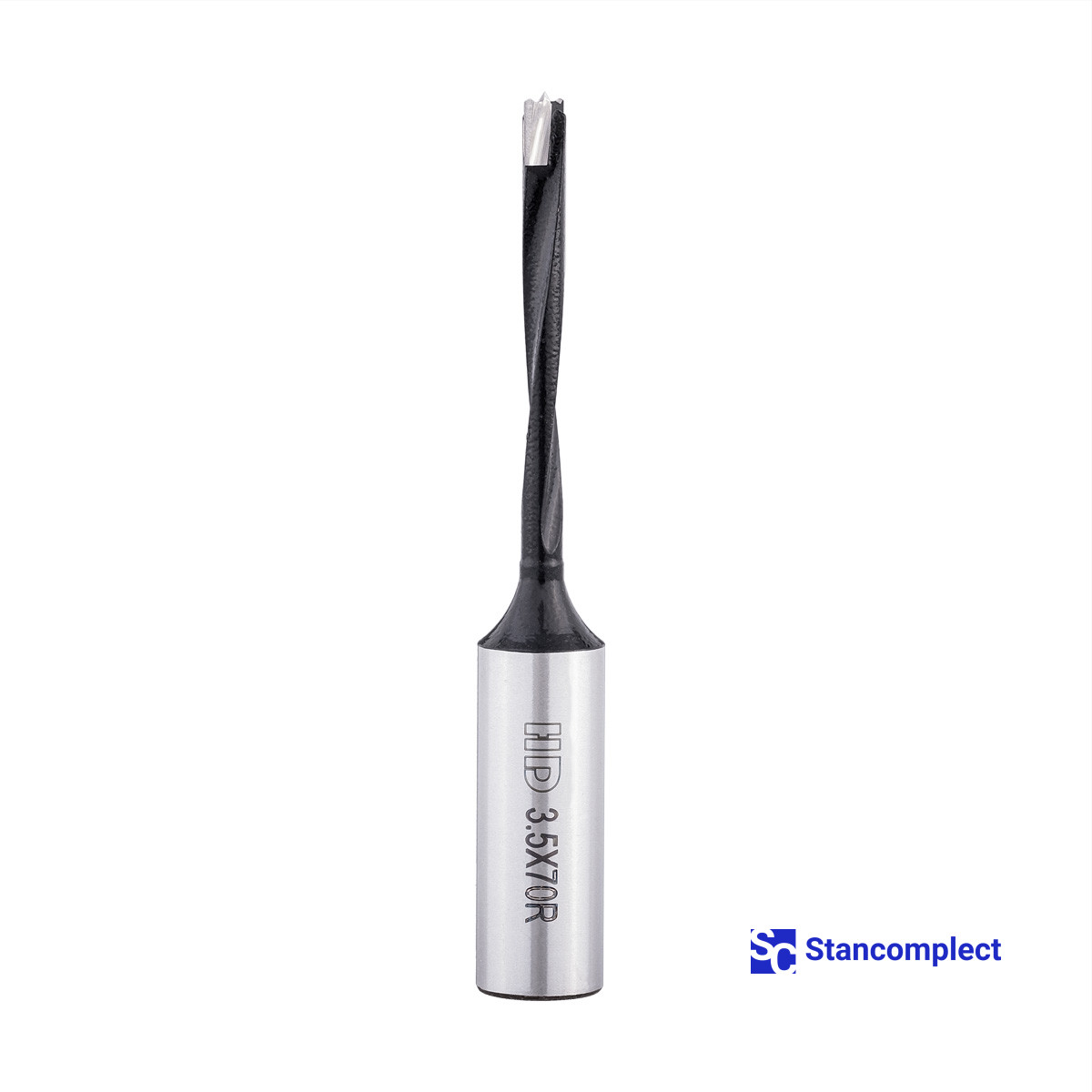 Blind hole drill bit HD d-3.5 mm, L-70 mm right with brazed plate (110 series). This drill bit is excellent for drilling blind holes in workpieces made of: MDF, chipboard, chipboard, solid wood, softwood and plywood.