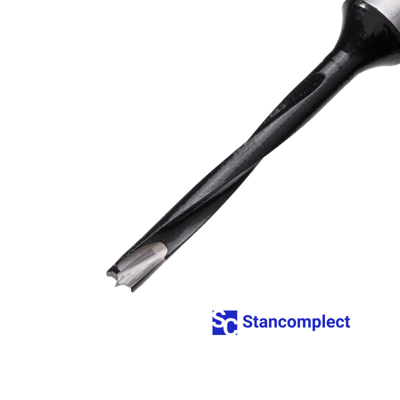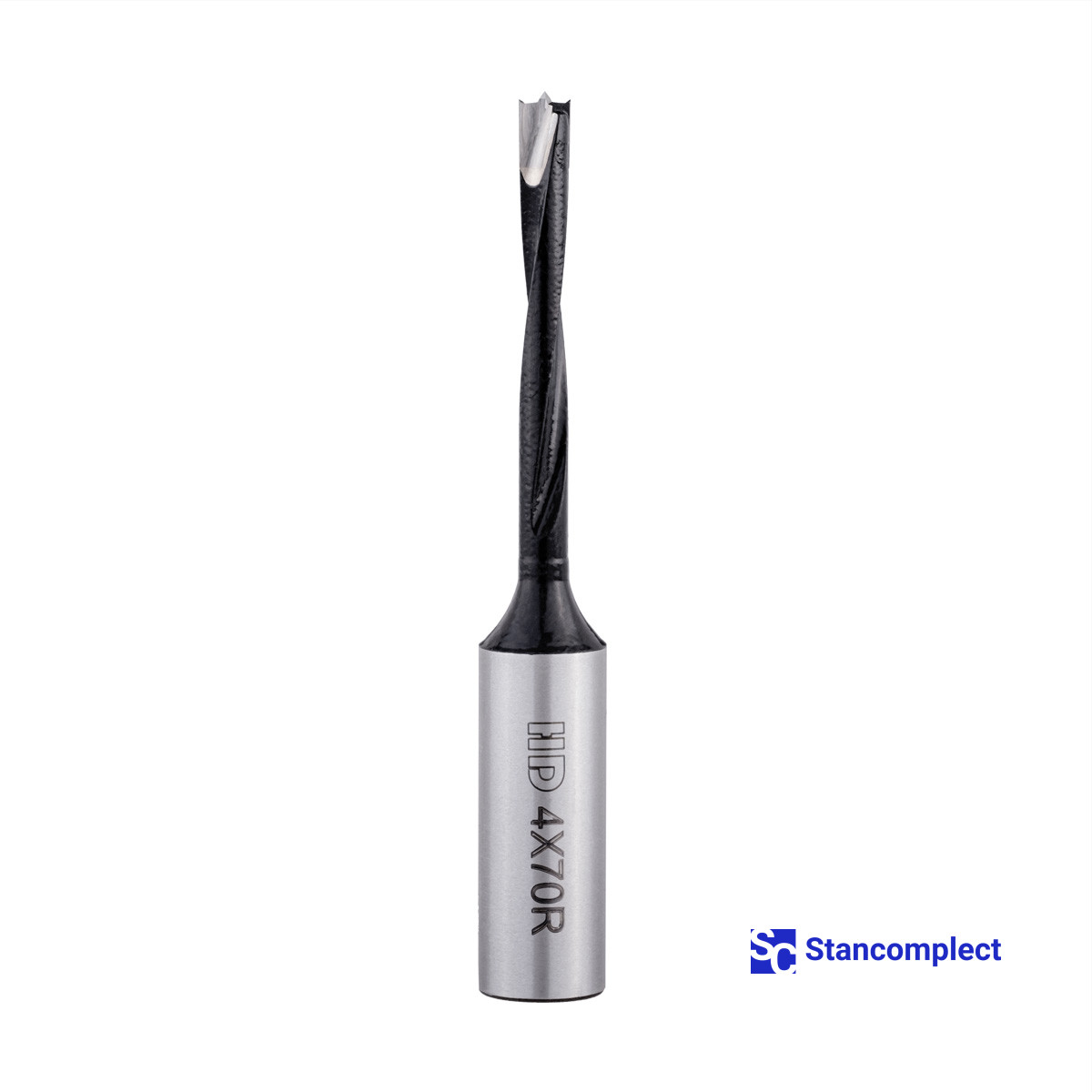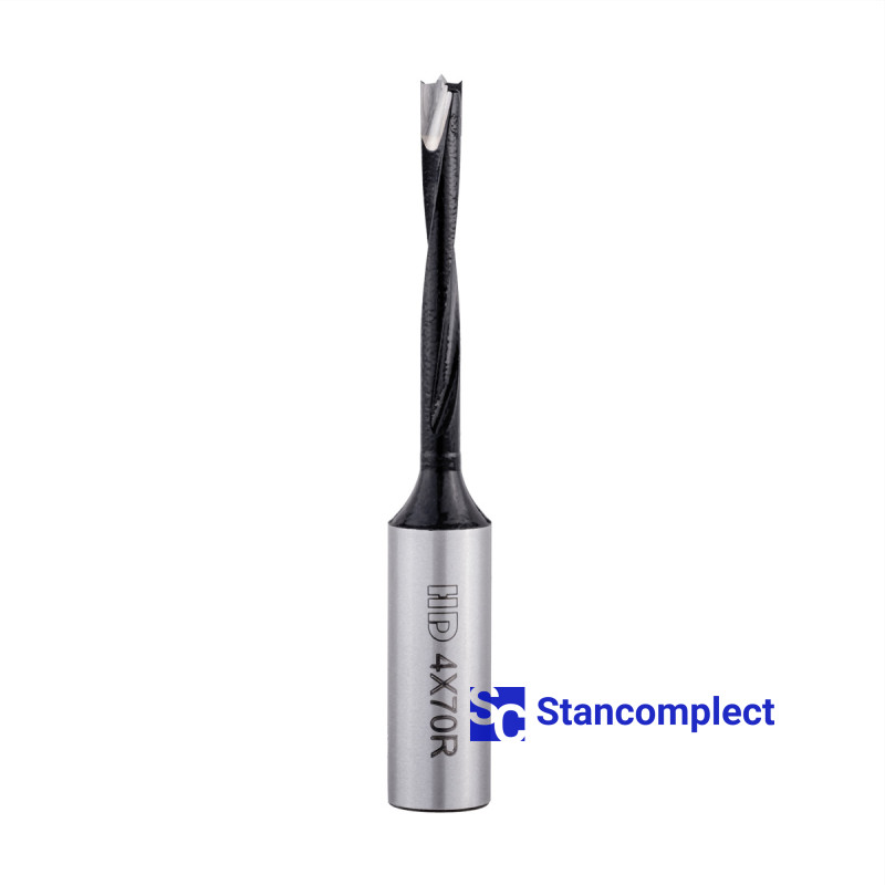 Blind hole drill bit HD d-4 mm, L-70 mm right with brazed plate (110 series). This drill bit is excellent for drilling blind holes in workpieces made of: MDF, chipboard, chipboard, solid wood, softwood and plywood.