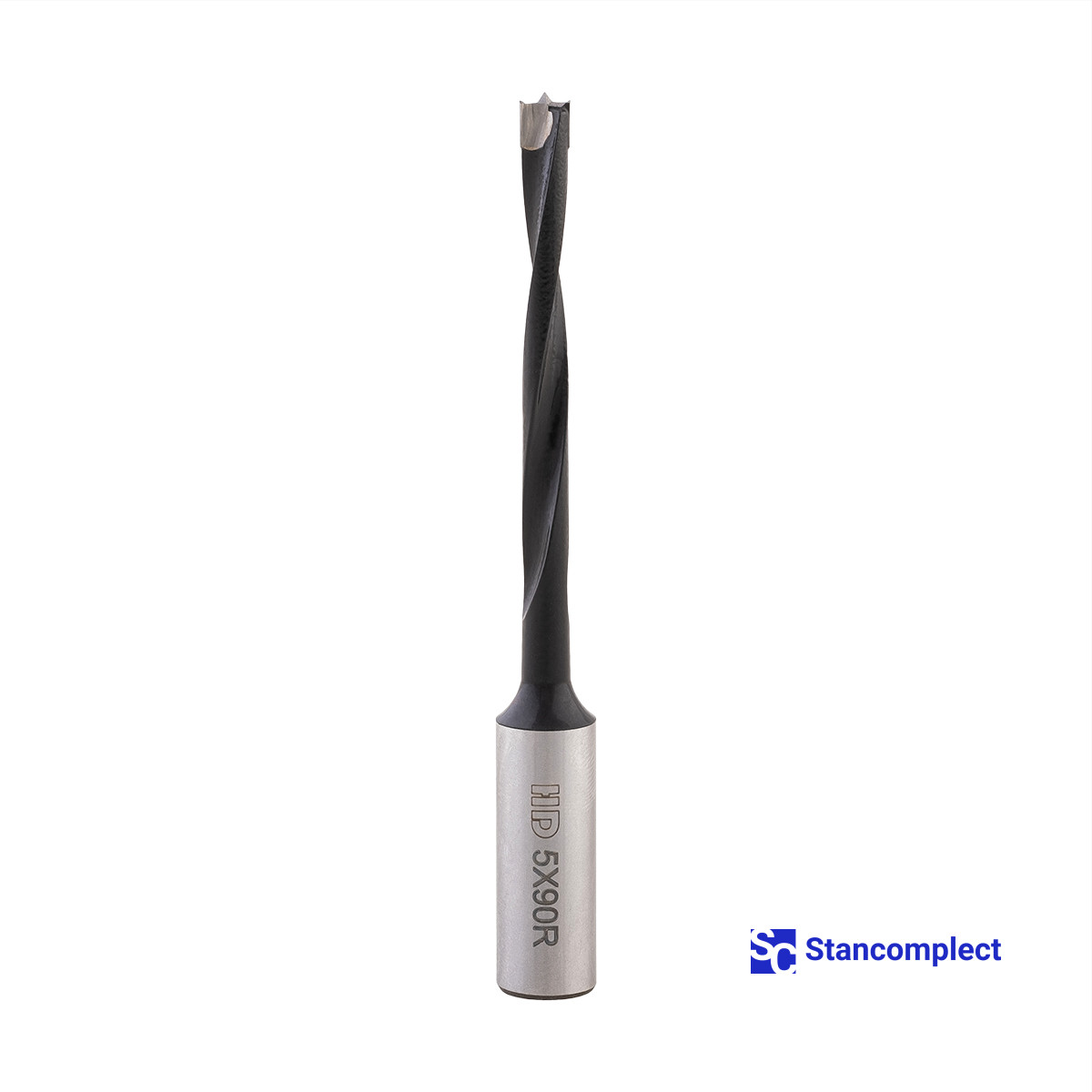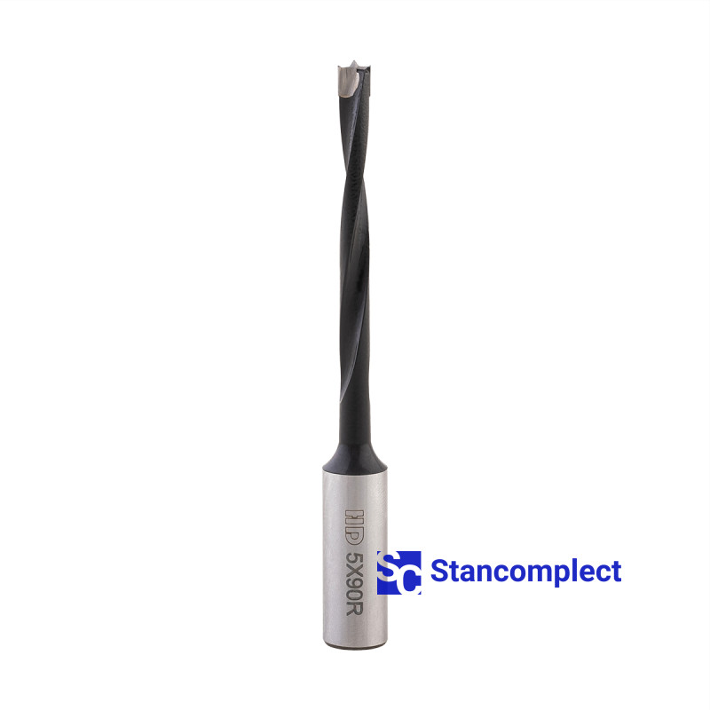 Blind hole drill bit HD d-5 mm, L-90 mm right with brazed plate (110 series). This drill bit is excellent for drilling blind holes in workpieces made of: MDF, chipboard, chipboard, solid wood, softwood and plywood.