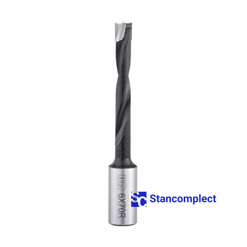 Blind hole drill bit HD d-6 mm, L-70 mm right with brazed plate (110 series). This drill bit is excellent for drilling blind holes in workpieces made of: MDF, chipboard, chipboard, solid wood, softwood and plywood.