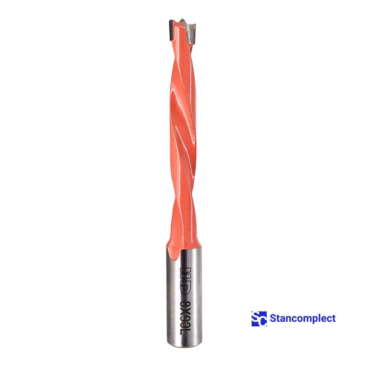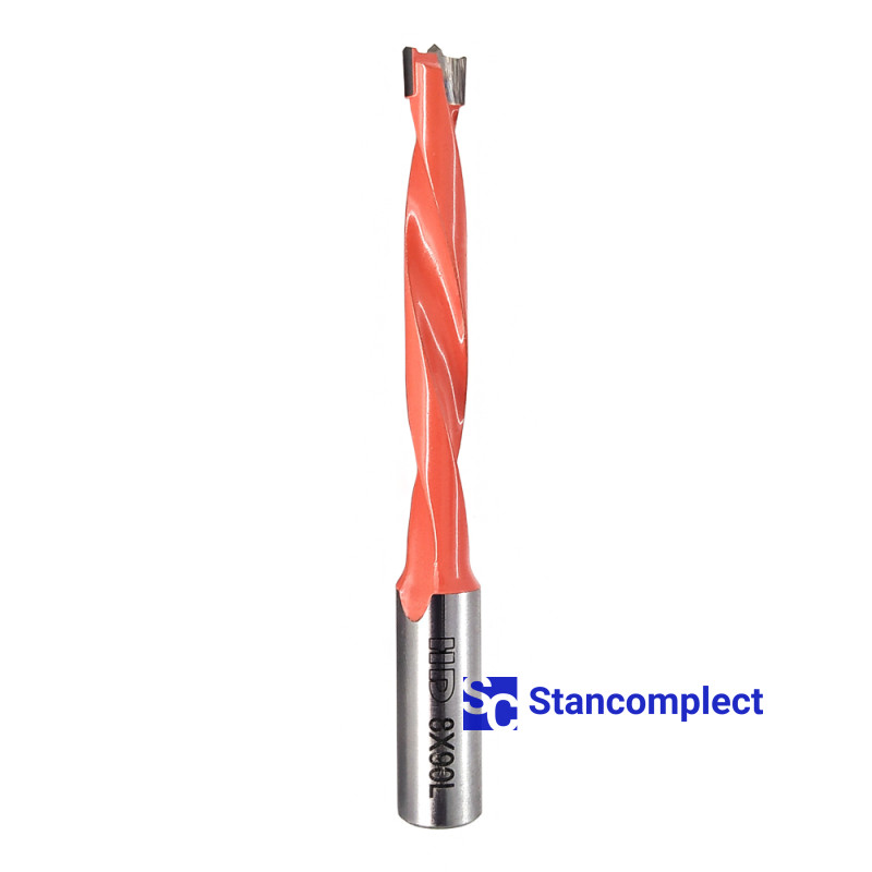 Blind hole drill bit HD d-8 mm, L-90 mm left with brazed plate (110 series). This drill bit is excellent for drilling blind holes in workpieces made of: MDF, chipboard, chipboard, solid wood, softwood and plywood.