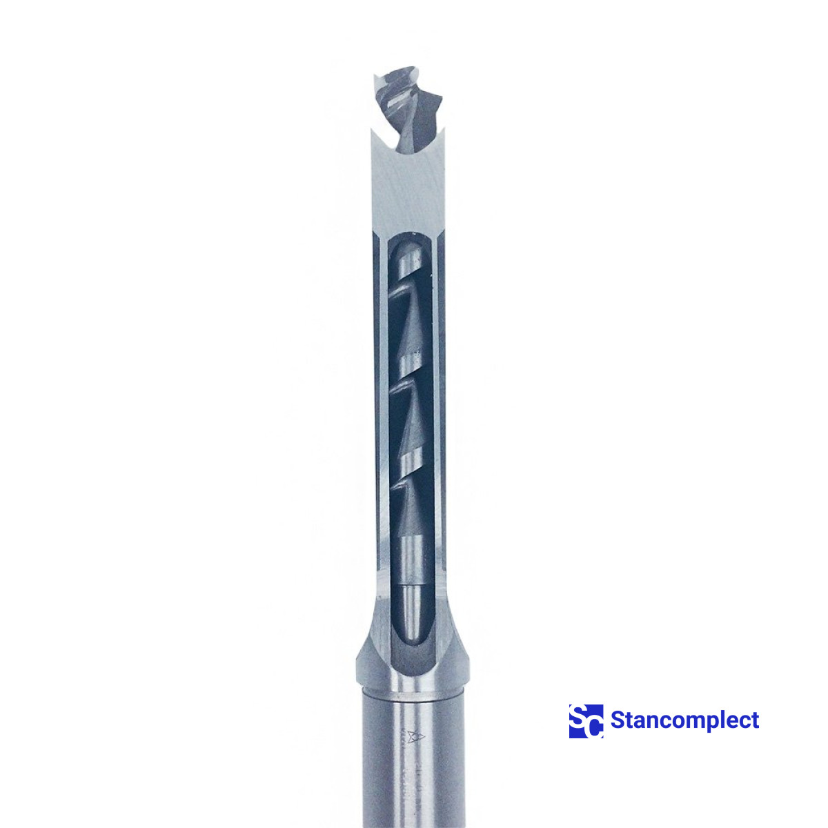 - Wide and deep helical flute for chip removal.