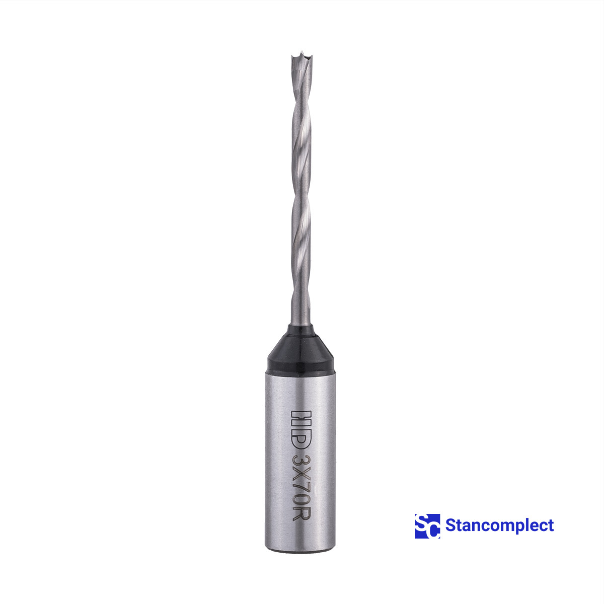 Solid carbide blind hole drill bit HD d-3 mm, L-70 mm right (301 series). This drill bit is excellent for drilling blind holes in workpieces made of: MDF, chipboard, chipboard, solid wood, softwood and plywood.