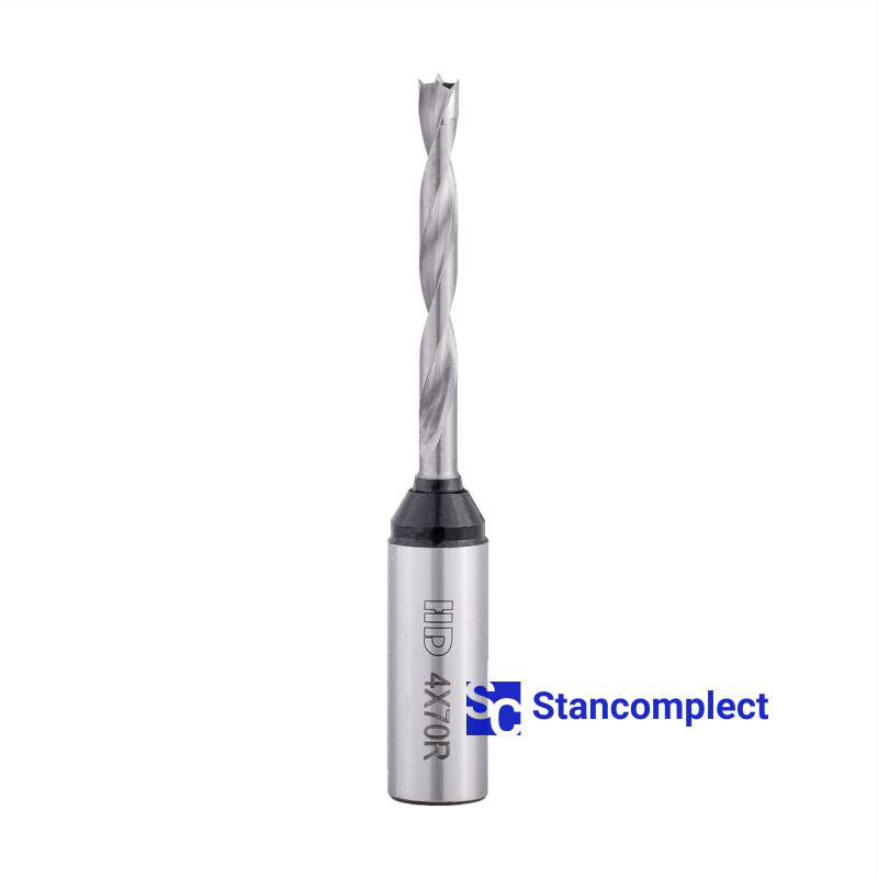 Solid carbide blind hole drill bit HD d-4 mm, L-70 mm right (301 series). This drill bit is excellent for drilling blind holes in workpieces made of: MDF, chipboard, chipboard, solid wood, softwood and plywood.