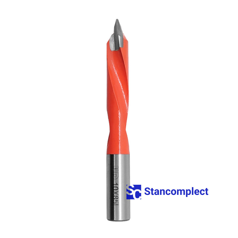 Through hole drill bit HD d-10 mm, L-85 mm left with brazed plate (130 series). This drill bit is great for drilling through holes in workpieces made of: MDF, chipboard, chipboard, solid wood, softwood and plywood.
