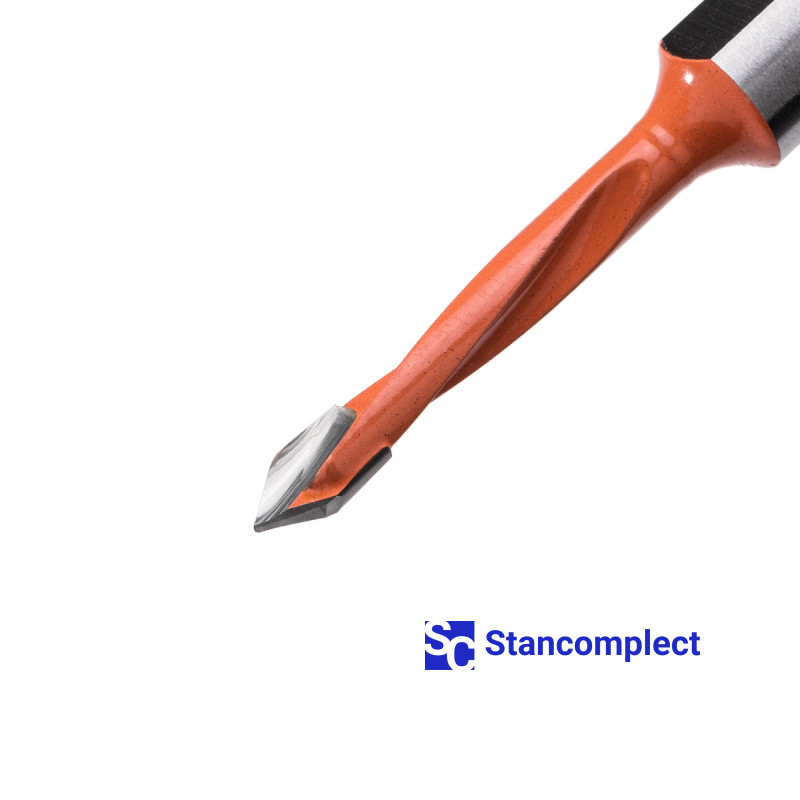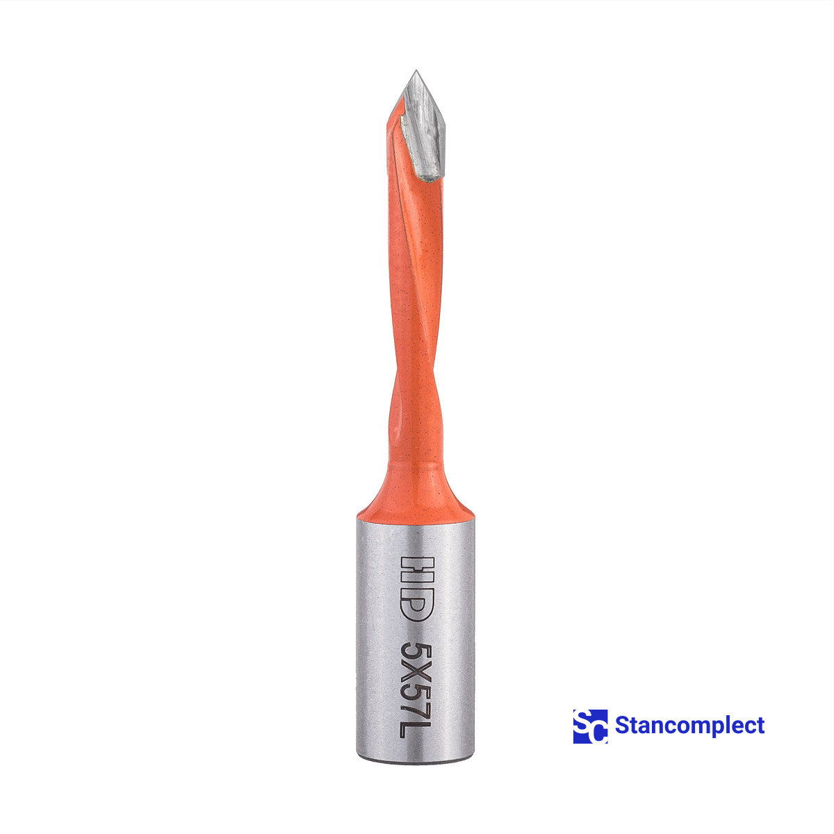 Through hole drill bit HD d-5 mm, L-57 mm left with brazed plate (130 series). This drill bit is great for drilling through holes in workpieces made of: MDF, chipboard, chipboard, solid wood, softwood and plywood.