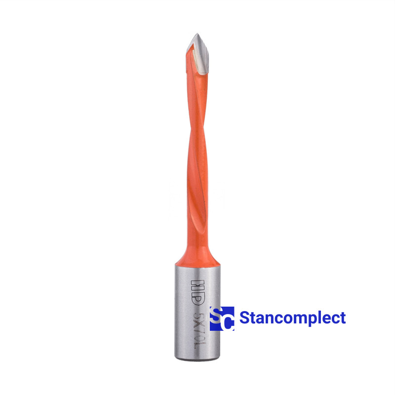 Through hole drill bit HD d-5 mm, L-70 mm left with brazed plate (130 series). This drill bit is great for drilling through holes in workpieces made of: MDF, chipboard, chipboard, solid wood, softwood and plywood.