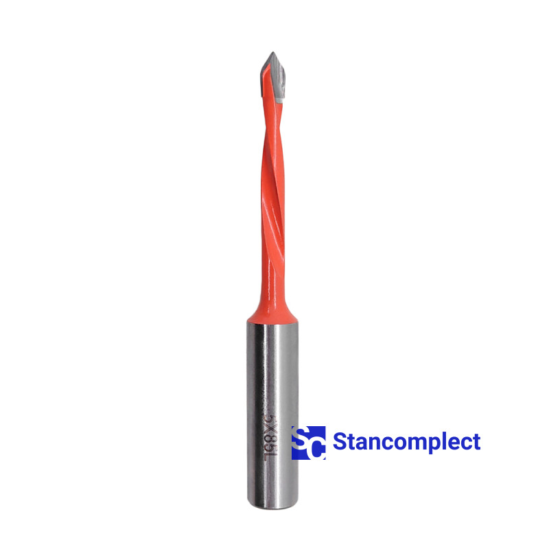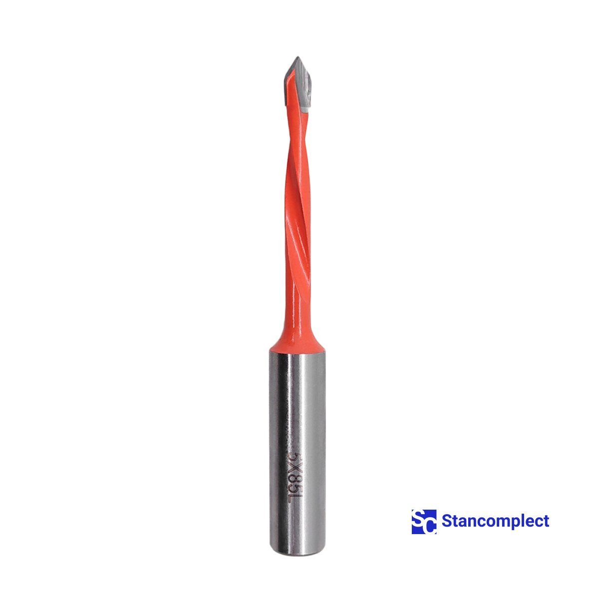 Through hole drill bit HD d-5 mm, L-85 mm left with brazed plate (130 series). This drill bit is great for drilling through holes in workpieces made of: MDF, chipboard, chipboard, solid wood, softwood and plywood.