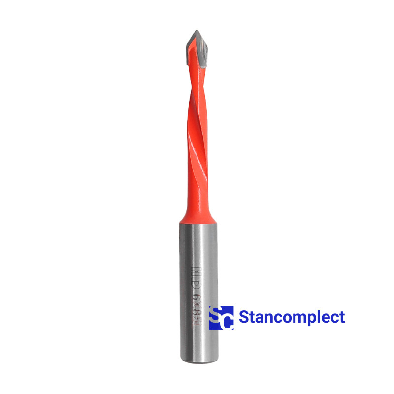 Through hole drill bit HD d-6 mm, L-85 mm left with brazed plate (130 series). This drill bit is great for drilling through holes in workpieces made of: MDF, chipboard, chipboard, solid wood, softwood and plywood.