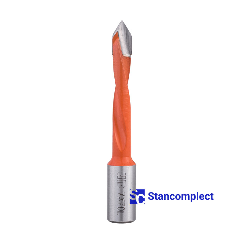 Through hole drill bit HD d-7 mm, L-70 mm left with brazed plate (130 series). This drill bit is great for drilling through holes in workpieces made of: MDF, chipboard, chipboard, solid wood, softwood and plywood.
