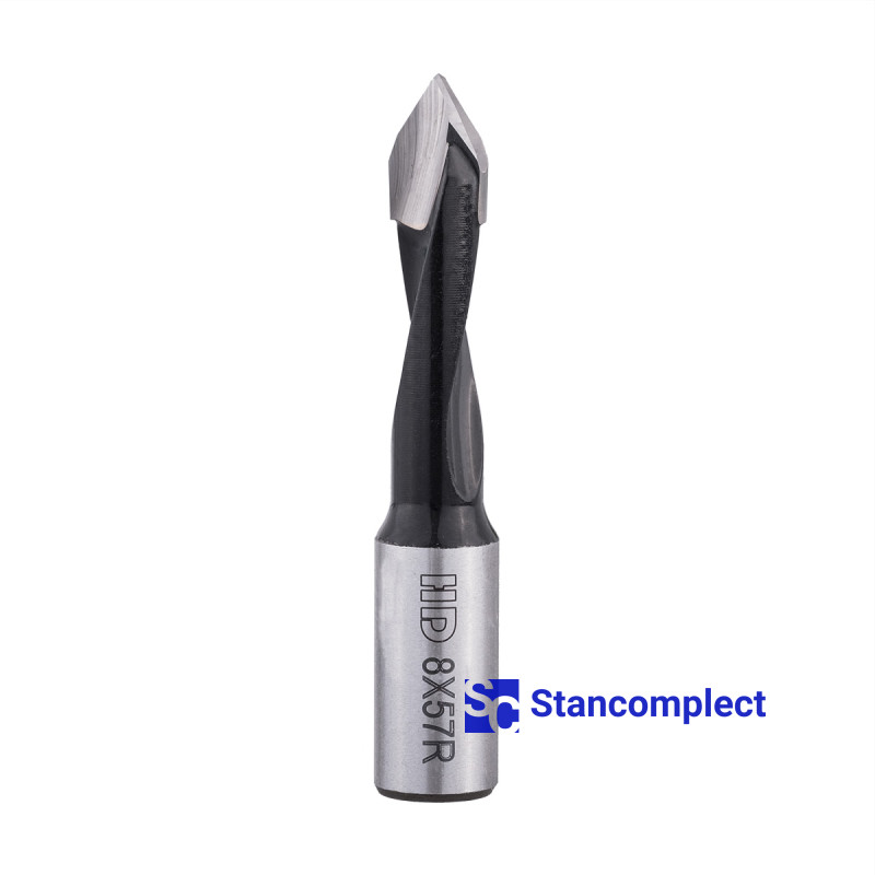 Through hole drill bit HD d-8 mm, L-57 mm right with brazed plate (130 series). This drill bit is great for drilling through holes in workpieces made of: MDF, chipboard, chipboard, solid wood, softwood and plywood.