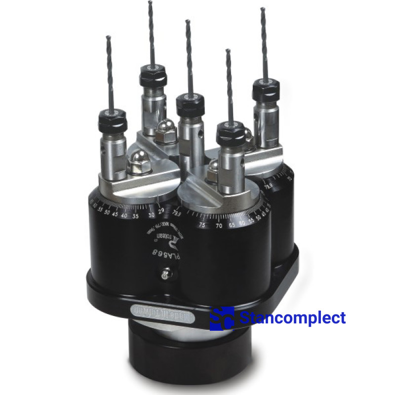 5-spindle drilling head for metal with adjustable spindle spacing 41–113 mm.