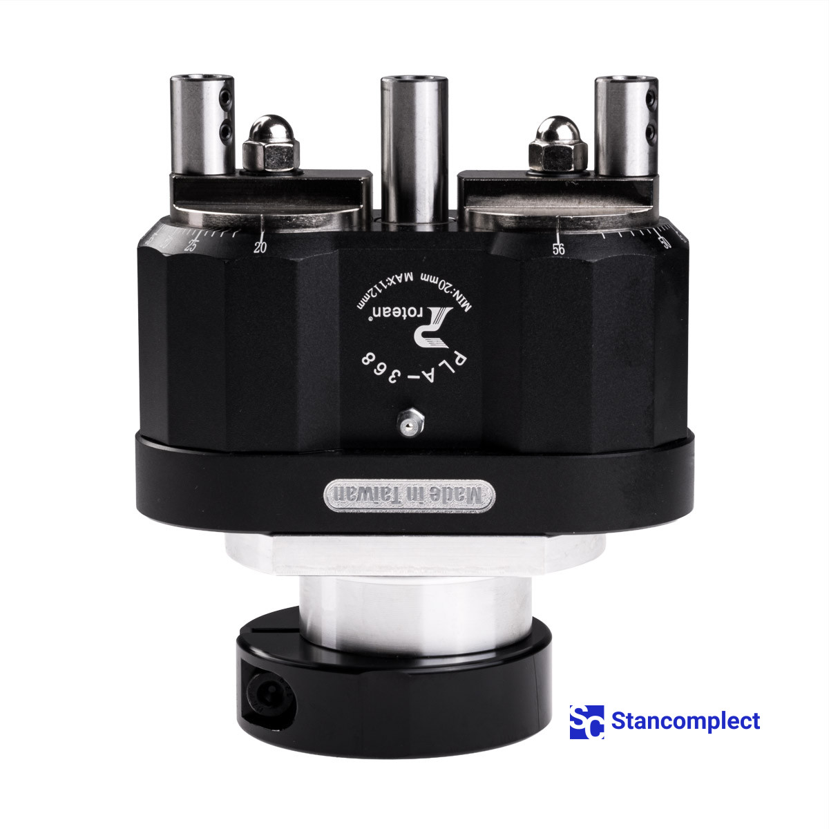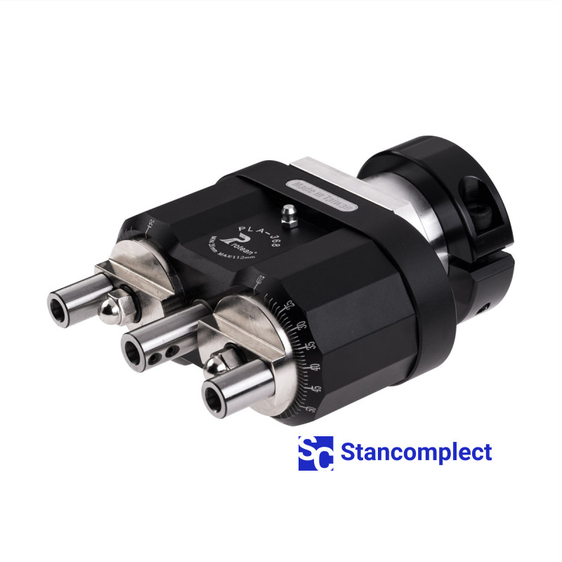 3-spindle drilling head with adjustable spindle spacing 20–112 mm.
