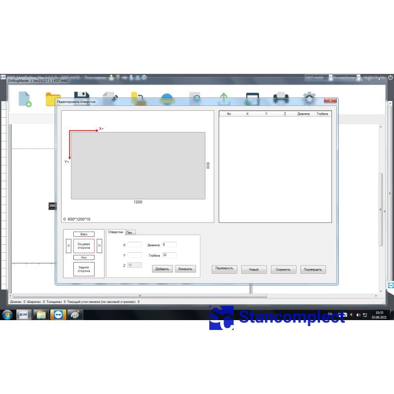 - Drilling of the part is carried out from four sides, this guarantees the processing of most filler cards in one work cycle.