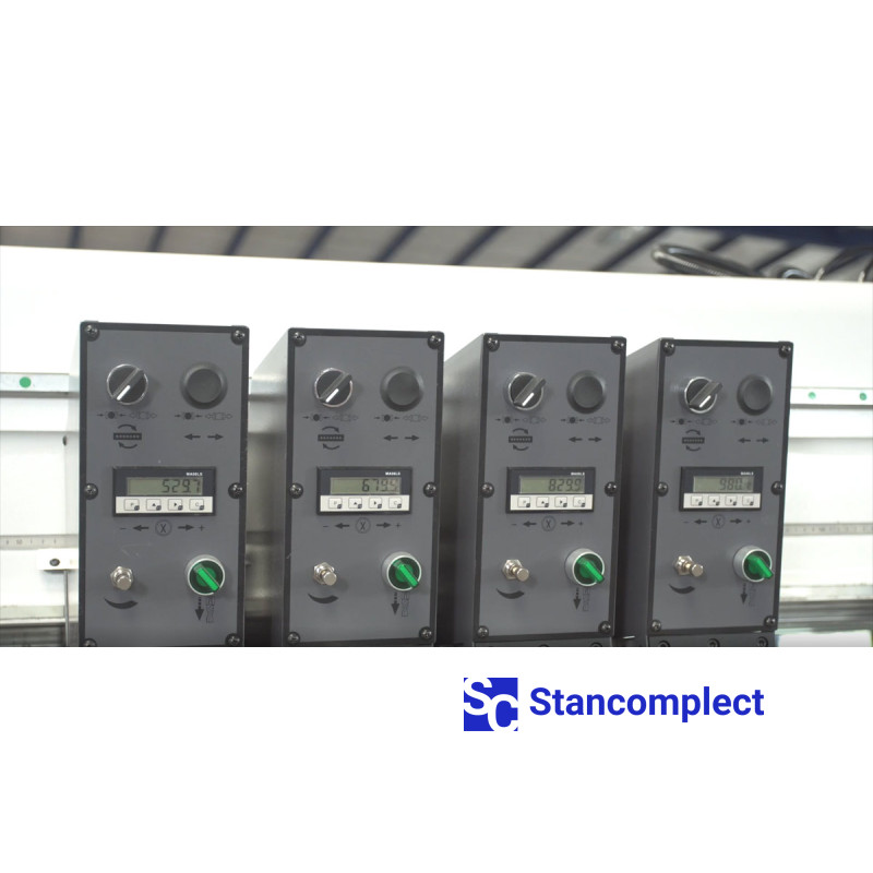 The machine is equipped with digital counters, which allows you to quickly change from one size to another. Pneumatic brakes securely fix the drilling traverses and guarantee stability and accuracy according to the additive chart.