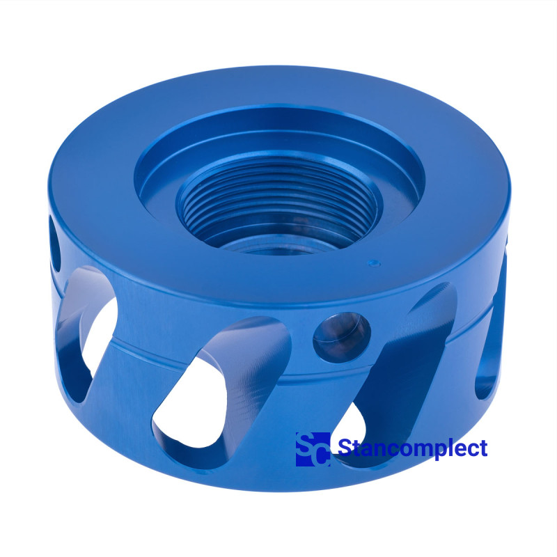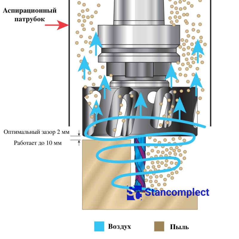 The dust extractor attachment for the ER-25 collet chuck allows you to remove dust from a workpiece made of MDF or chipboard and replaces the classic lock nut. This nozzle provides effective dust removal, as well as cooling of the tool and material in the cutting zone during high-speed cutting on CNC machining centers using NESTING technology.