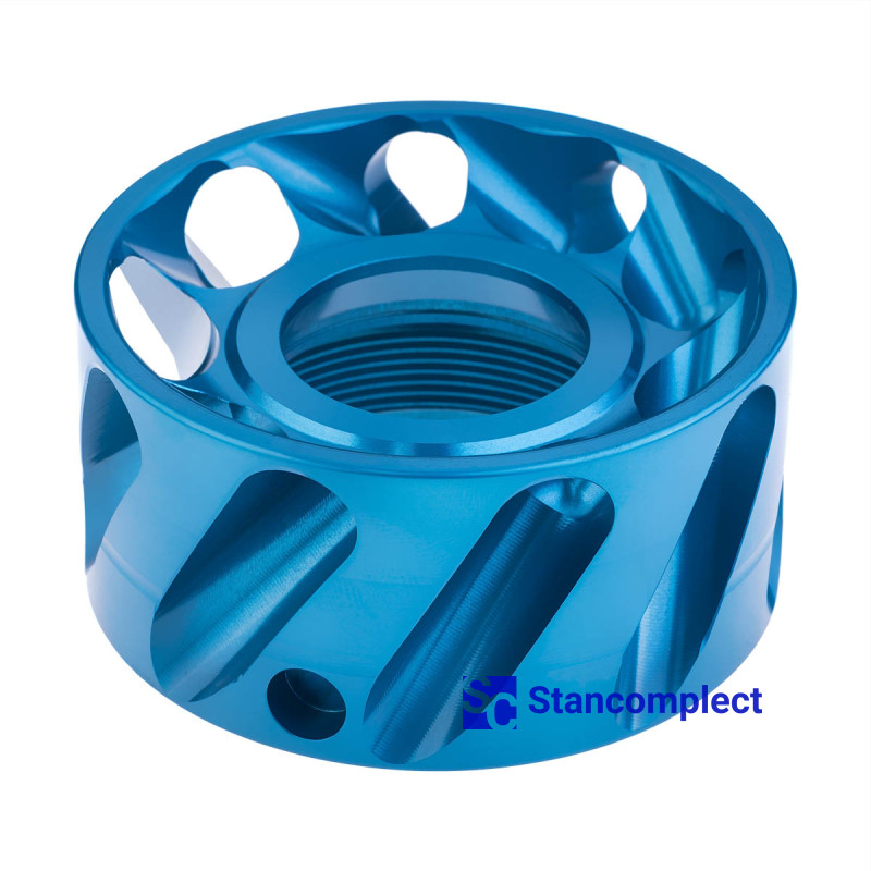 The dust extractor attachment for the ER-40 collet chuck allows you to remove dust from a workpiece made of MDF or chipboard and replaces the classic lock nut. This nozzle provides effective dust removal, as well as cooling of the tool and material in the cutting zone during high-speed cutting on CNC machining centers using NESTING technology.
