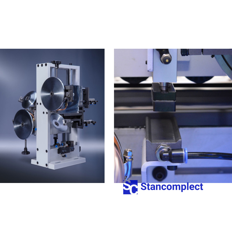 The milling unit consists of two high-frequency electric motors equipped with radius cutters, which allow processing edge material with a thickness of 0.4 - 3.0 mm. The part is tracked by two large round cams (on each motor) mounted on a floating assembly, this design prevents scrap during milling.