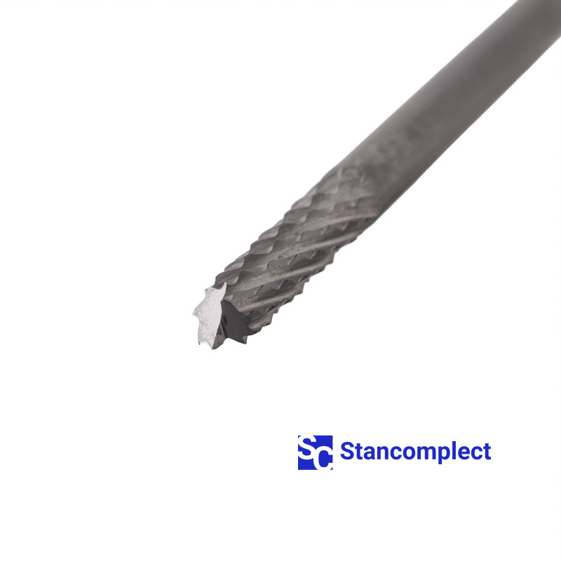 Corn End mill 3.175x12x3.175x38. This type of end mill has a very wide range of possibilities and applications. Practically composite material is processed, from plywood to textolite, PVC, acrylic. The main direction of contouring.