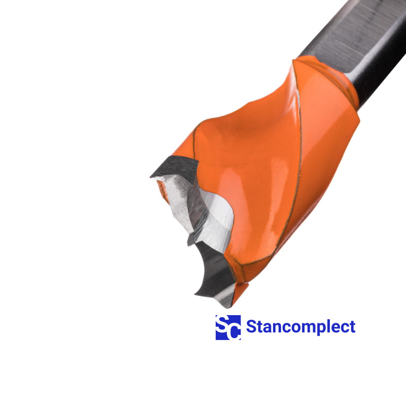 Forstner drill bit HD d-15 mm, L-57 mm left screw type (601 series). This Forstner drill bit is excellent for drilling holes in workpieces made of: MDF, chipboard, chipboard, solid wood, softwood and plywood.