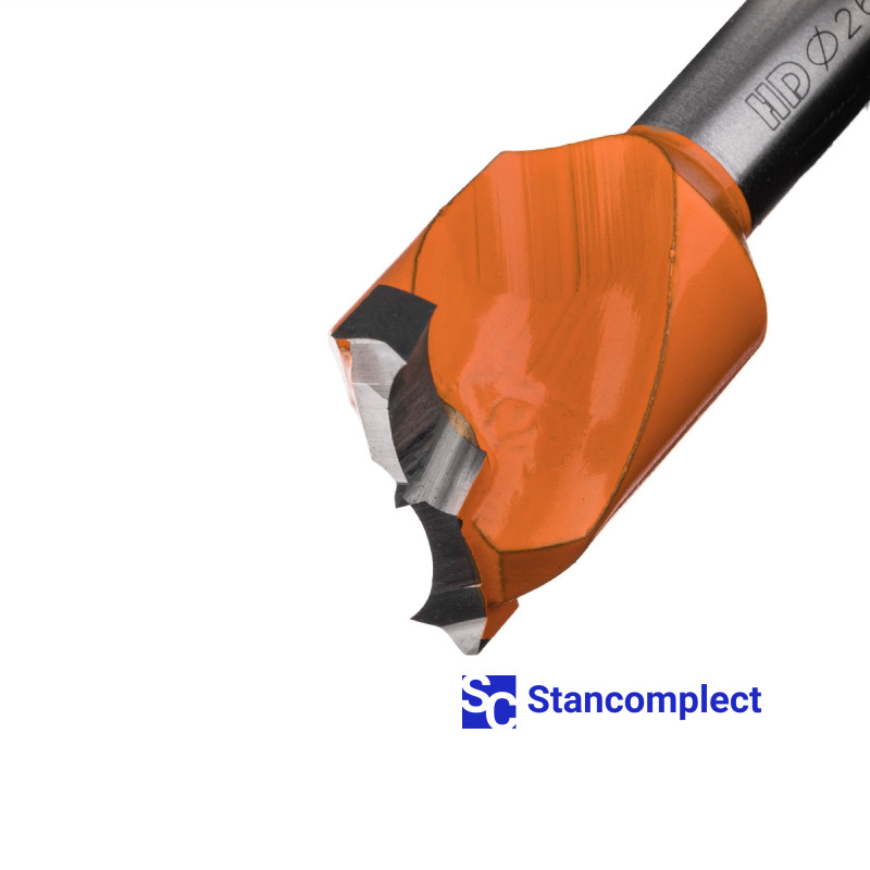 Forstner drill bit HD d-26 mm, L-57 mm left screw type (601 series). This Forstner drill bit is excellent for drilling holes in workpieces made of: MDF, chipboard, chipboard, solid wood, softwood and plywood.