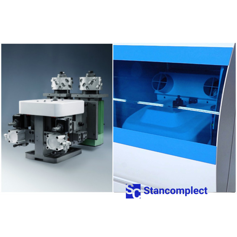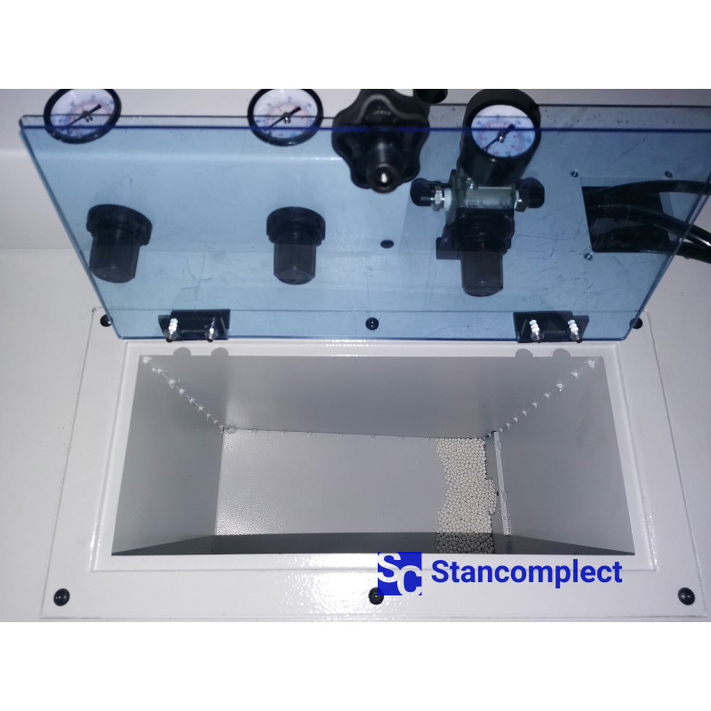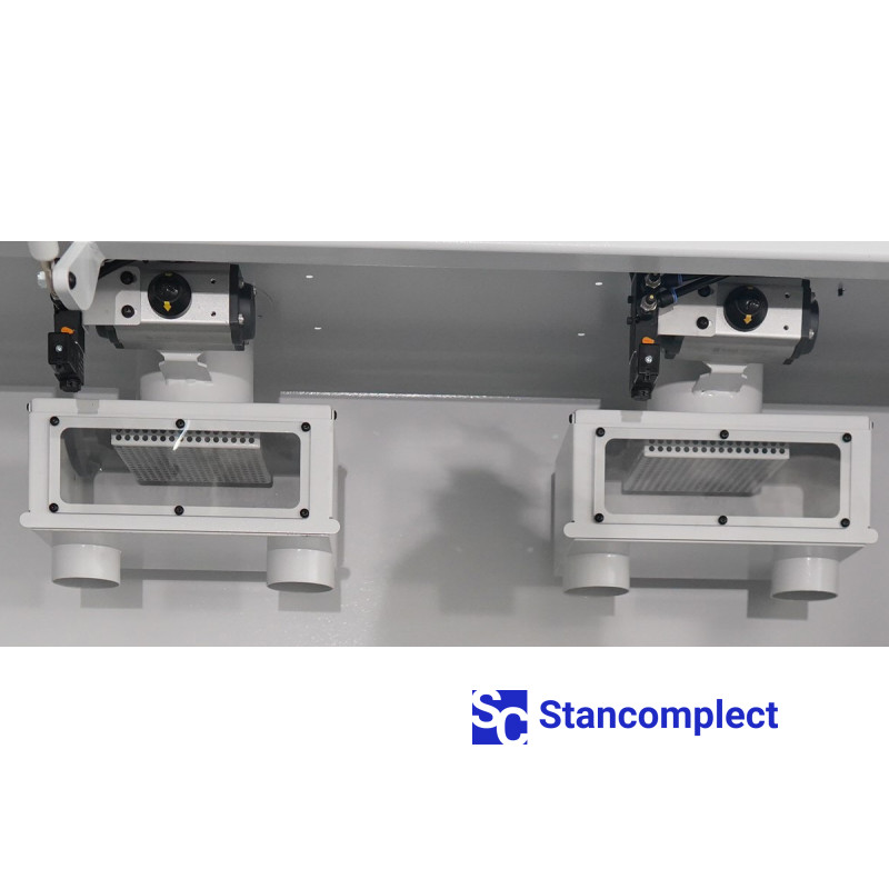 - Second unit for applying polishing liquid: using 2 nozzles in front of the polishing unit. This is the cleaning fluid that is applied. The main task is to remove the release agent (release liquid) applied at the beginning and any loose adhesive residues. And also to add shine to the processed edge of the part.