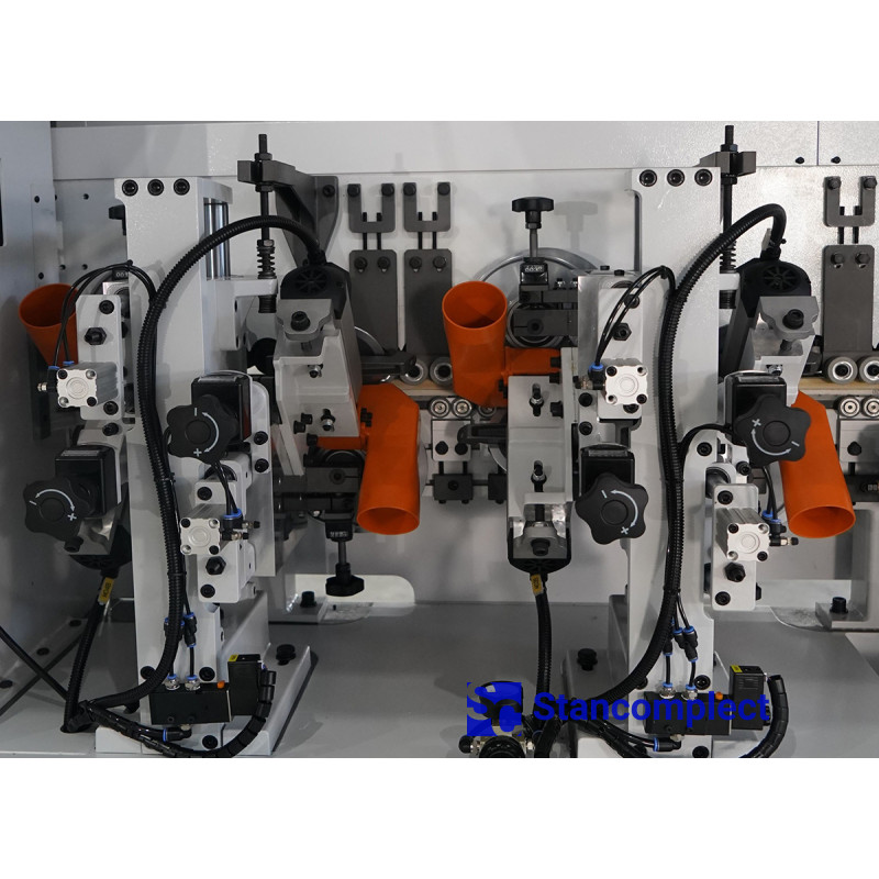 The rounding (contouring) unit is equipped with four high-speed motors and operates successfully at a speed of 26 m/min. The unit is equipped with diamond radius cutters. There are four possible operation schemes for the unit.