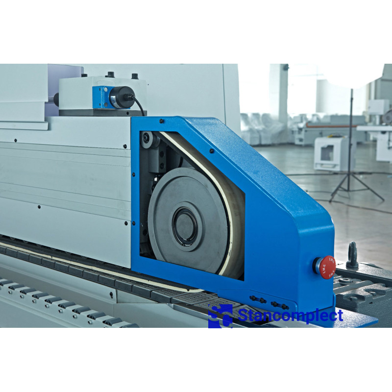 A double polishing unit polishes the processed part of the edge; high quality is achieved through an oscillation system driven by pneumatic cylinders. To impart a final shine to the edge, a unit for applying polishing liquid is installed.