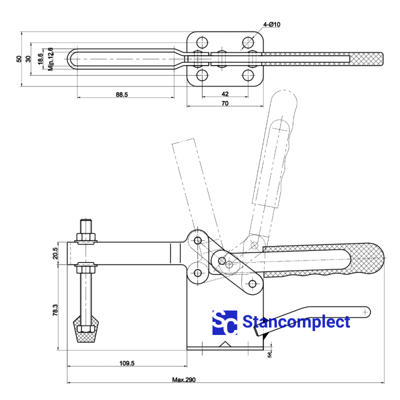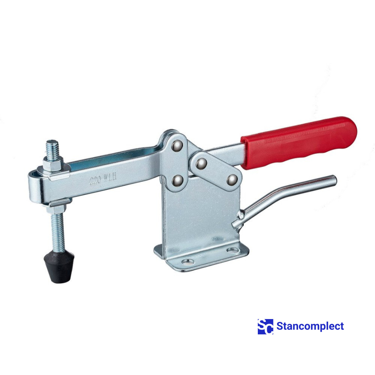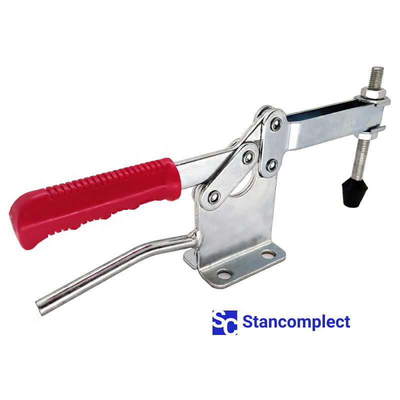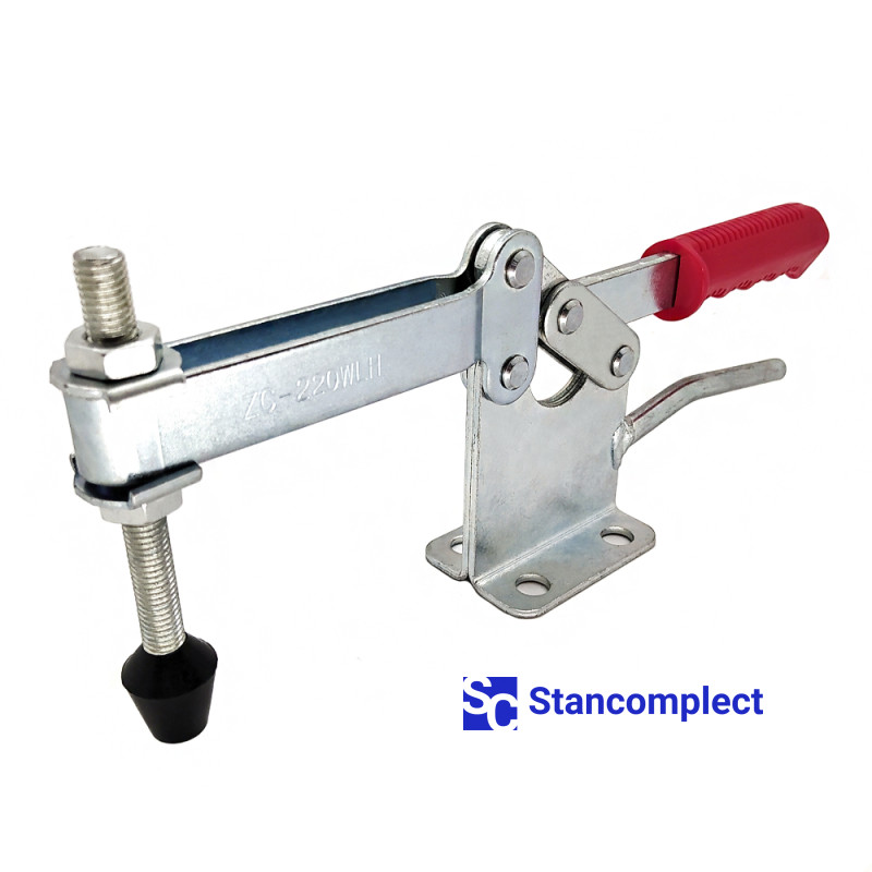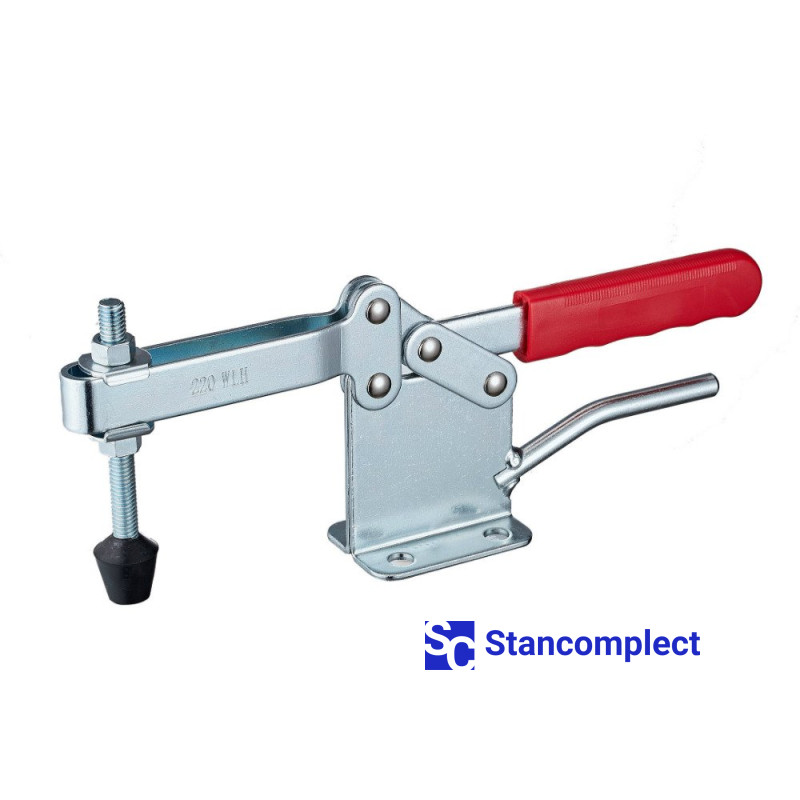 Toggle clamp ST-220-WLH with a horizontal handle for quick clamping of the workpiece. The clamping screw has a rubberized tip. The U-shaped bar allows you to adjust the position of the clamping screw. Quick release horizontal toggle clamp ST-220-WLH provides high performance by securely and quickly fixing assemblies and parts with one hand movement.