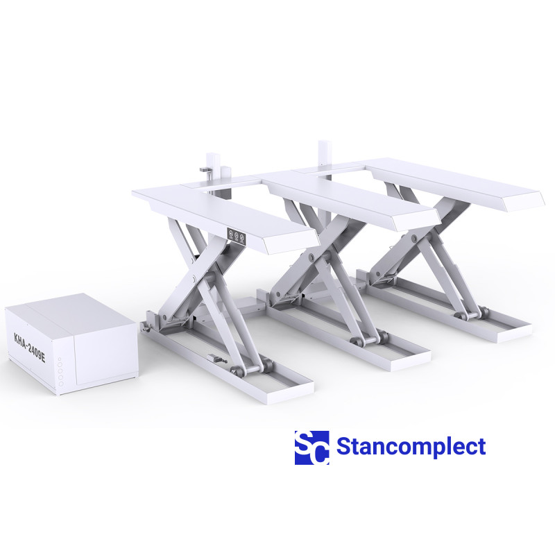 Hydraulic scissor lift table KDT KHA-2409E with a load capacity of up to 3000 kg, for sheets up to 2800x2070 mm, is designed to rise to the level of the feeder or loading table of the equipment and then move a package of sheet materials (chipboard, MDF, veneer, plywood) or a stack of solid wood . It can be used in the production of cabinet furniture or in a woodworking shop.