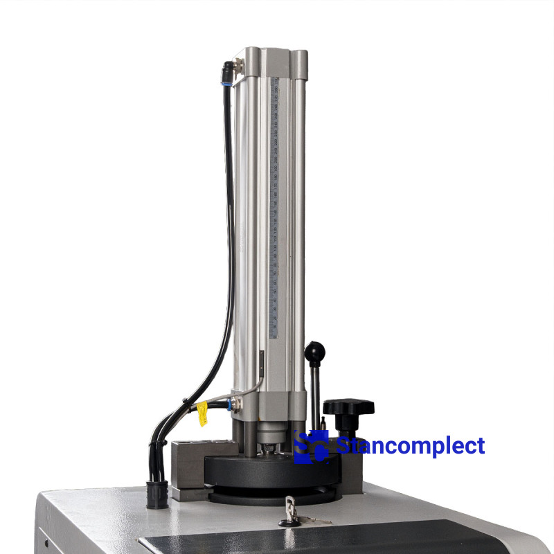 PUR Hot Melt Pre-Melter KDT PUR-2.5C is used with KDT edgebanding machines equipped with gluing units for PUR adhesive. PUR adhesive, in factory-packaged cores, is placed in a special tank with a heating element at the bottom. The melted adhesive at the bottom of the core is forced by an upper pneumatic cylinder through an opening in the chamber floor by a moving pressure disk and into an intermediate tank, where it remains heated and liquid. As needed, a gear pump delivers the required amount of adhesive through a heated hose into the edgebanding machine.