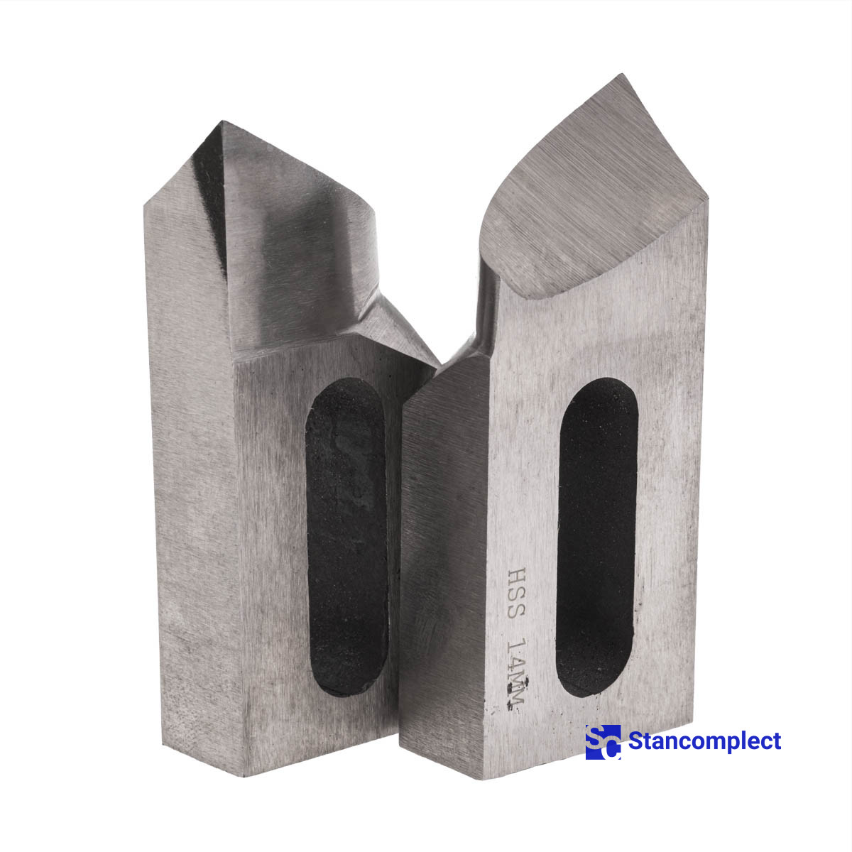 Knives for a circular stick machine 72x30x14 mm made of high speed steel HSS. The material of steel is Kh12MF, which has good heat resistance and strength, high hardenability, hardenability and wear resistance.