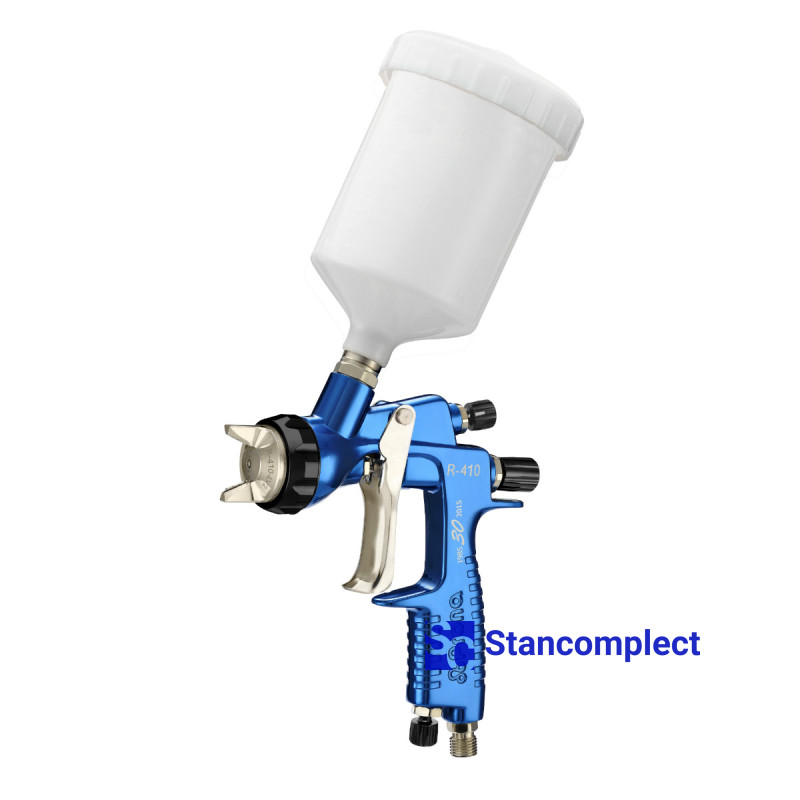 Kraskoraspylitel manual R-410-G20 PRONA (nozzle 2.0 mm) is designed to spray materials ( from liquid to low viscosity ) on the surface manually. This spray gun is ideal for spraying most paints on metal, glass, plastic, ceramic and wood surfaces. Lightweight atomizer body made of die-cast aluminum alloy . The surface of the atomizer has been anodized to facilitate cleaning and maintenance of the atomizer. All channels, nozzles and needles are made of stainless steel , which allows you to spray water-based materials .