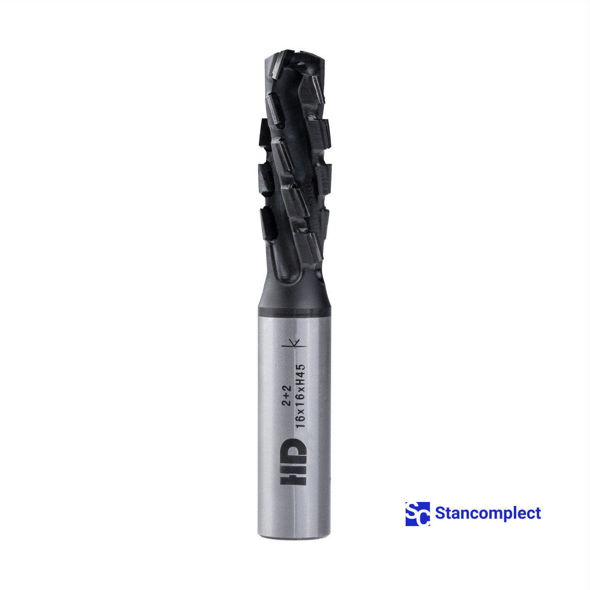 Diamond router cutter with coating 16x45x105x16 Z=2+2 Nesting HD (Taiwan) for cutting chipboard is used on CNC router machines for jointing, quartering, grooving, overcutting and cutting chipboard, MDF, laminated chipboard, laminate, plastics and veneered panels. High productivity is achieved with preliminary and finishing milling.