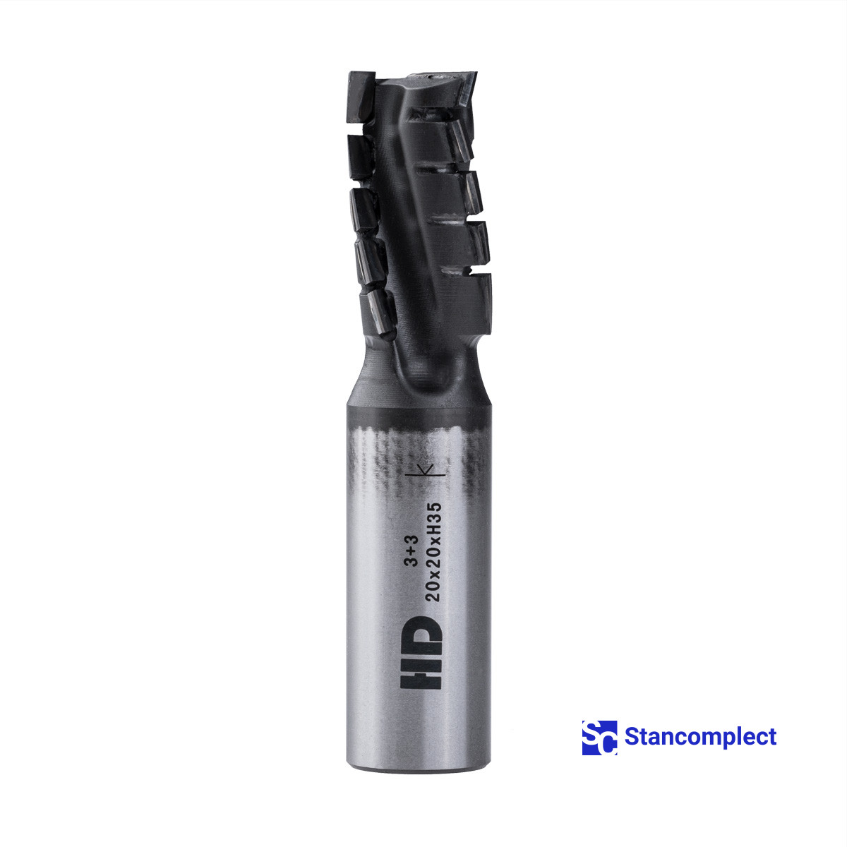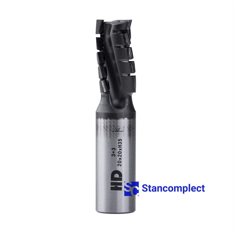 Diamond router cutter with coating 20x35x97x20 Z=3+3 Nesting HD (Taiwan) for cutting chipboard is used on CNC router machines for planing, cutting quarters, grooving, overrunning and cutting chipboard, MDF, laminated chipboard, laminate, plastics and veneered panels. High productivity is achieved with preliminary and finishing milling.
