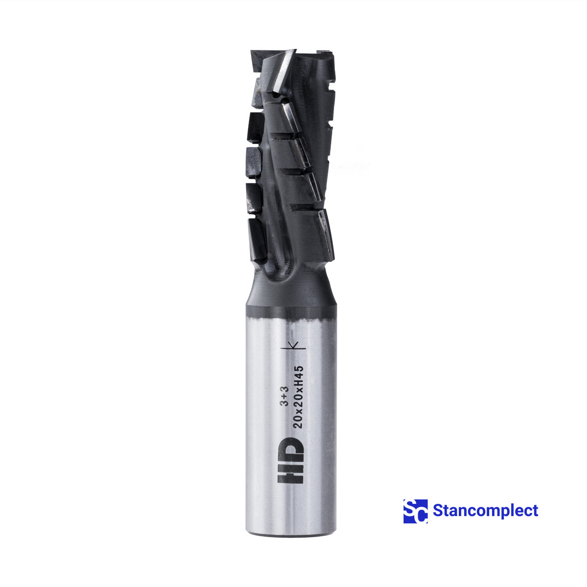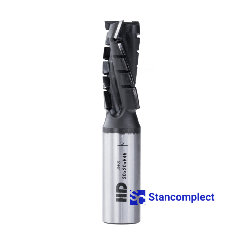 Diamond router cutter with coating 20x45x105x20 Z=3+3 Nesting HD (Taiwan) for cutting chipboard is used on CNC router machines for planing, cutting quarters, grooving, edging and cutting chipboard, MDF, laminated chipboard, laminate, plastics and veneered panels. High productivity is achieved with preliminary and finishing milling.