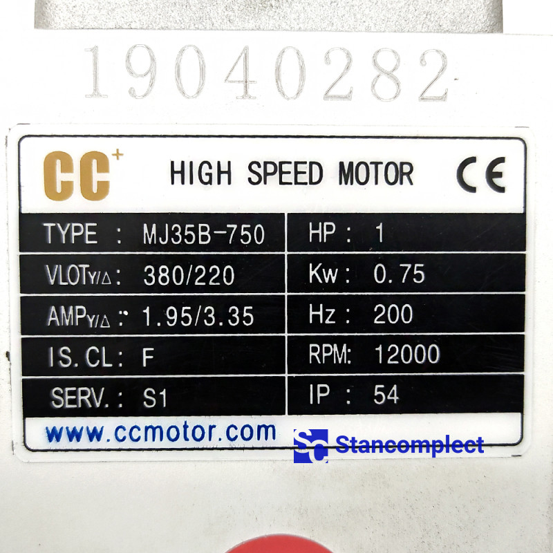 Milling motor MJ35B-750 0.75 kW, 200 HZ, 12000 rpm left for edge banding machine.