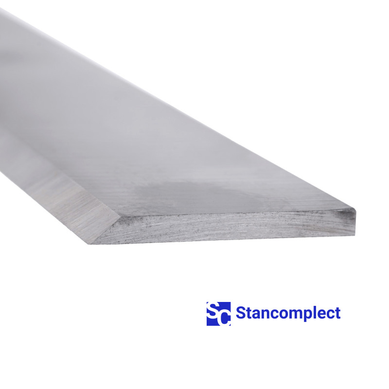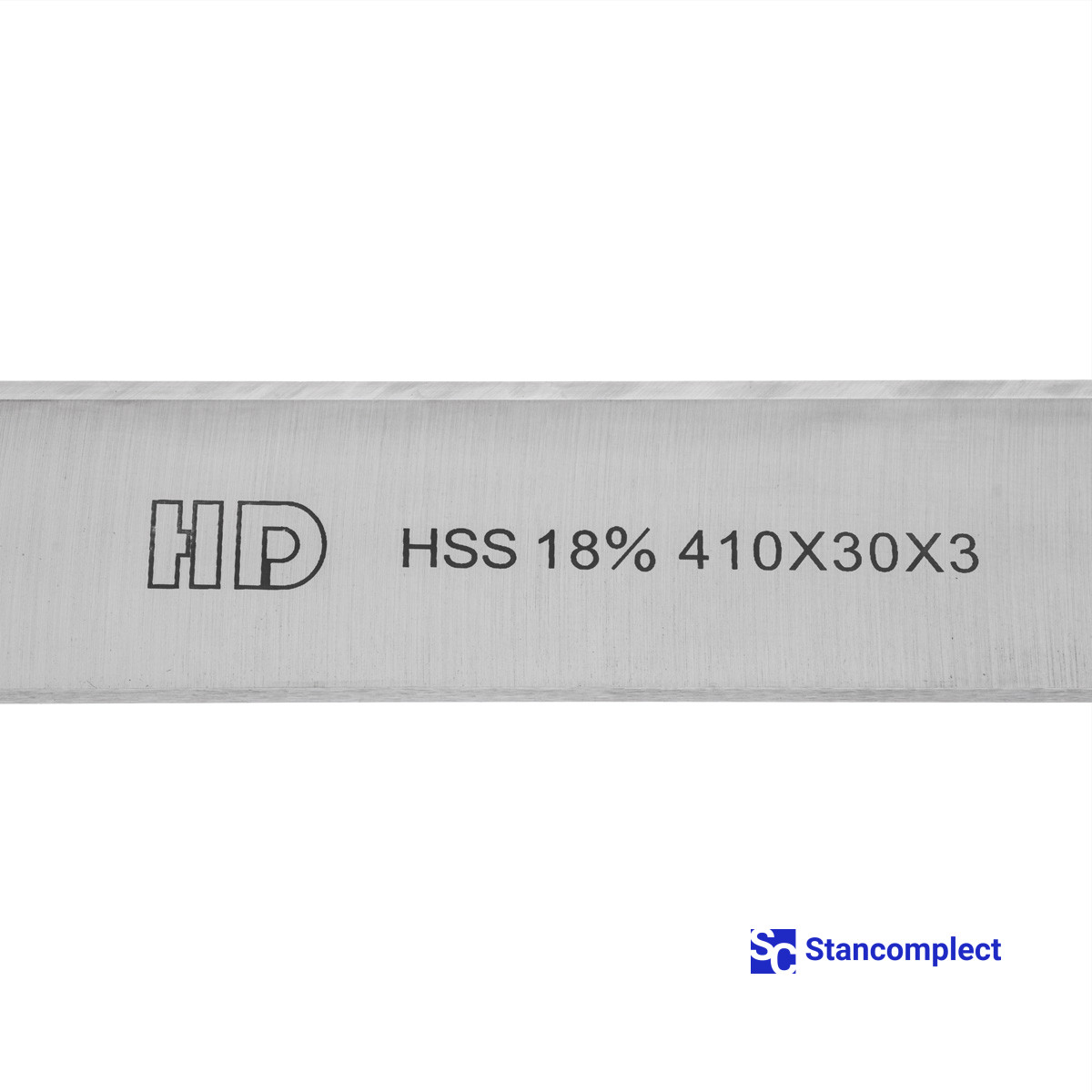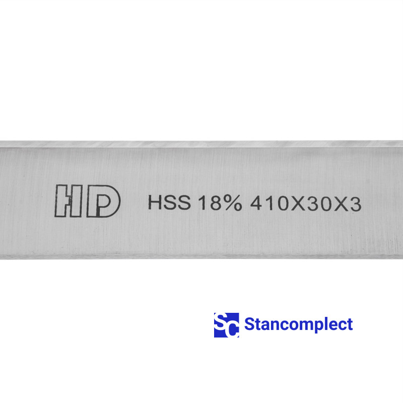 Planer knife 410x30x3 HSS 18% one-sided from HD Woodworking Tools (Taiwan) for knife drums or knife shafts of milling, planing, planing, planer machines. The knife is made of high-quality high-speed steel HSS 18% and is used for straight-line processing of soft and hard woods.
