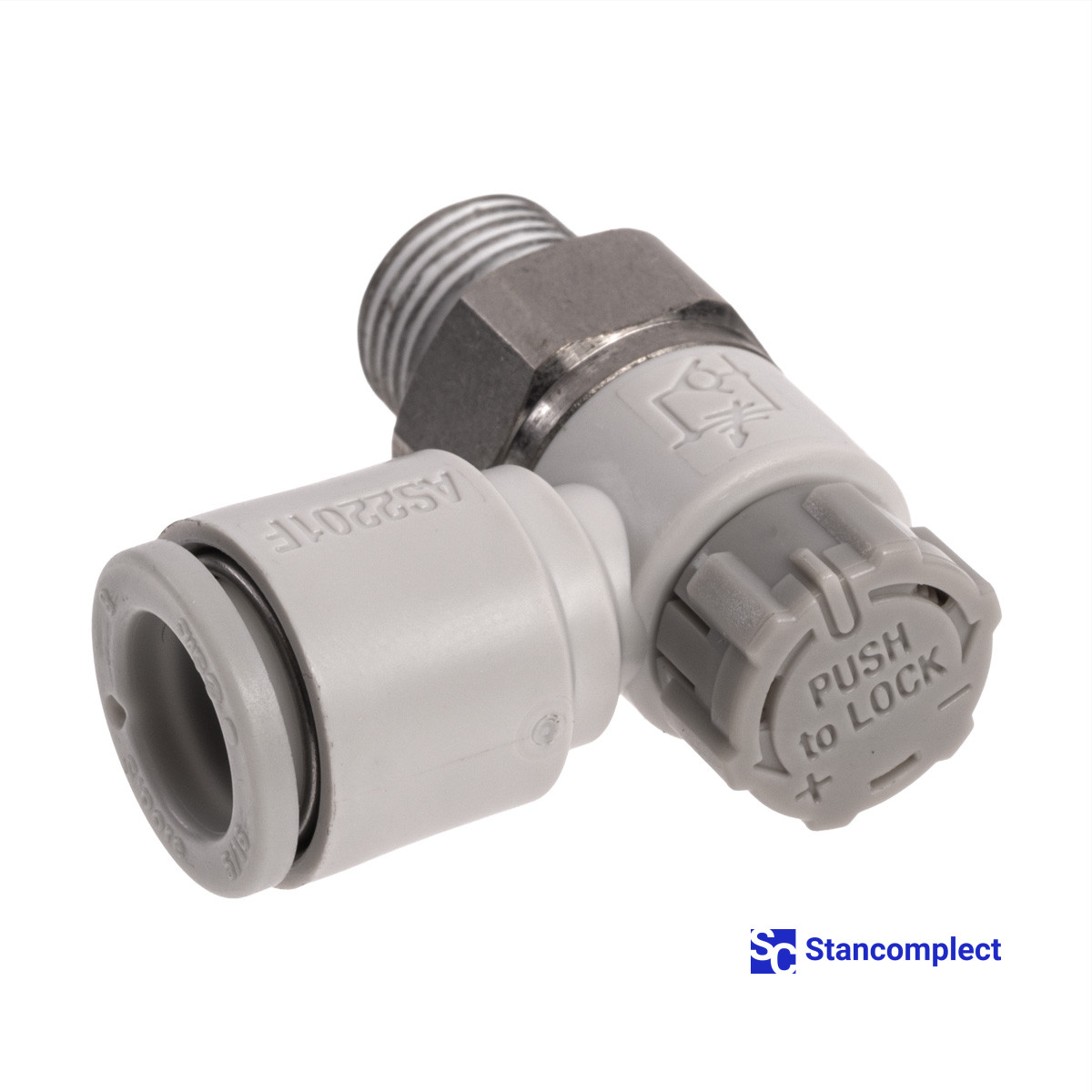 Pneumatic fitting with adjustment AS2201F-01-08SA for KDT CNC beam saws.