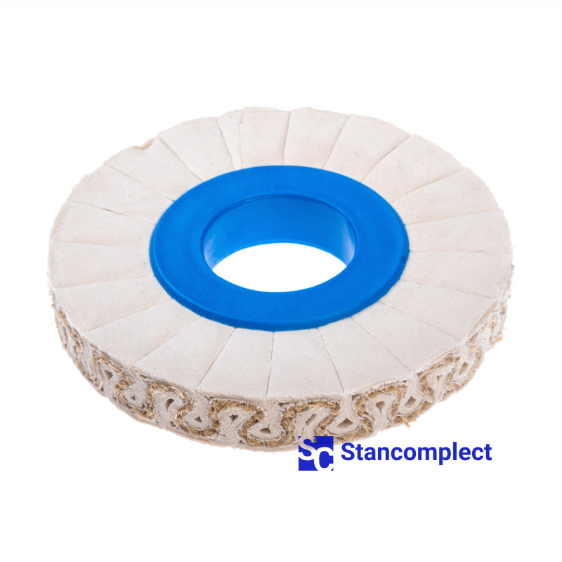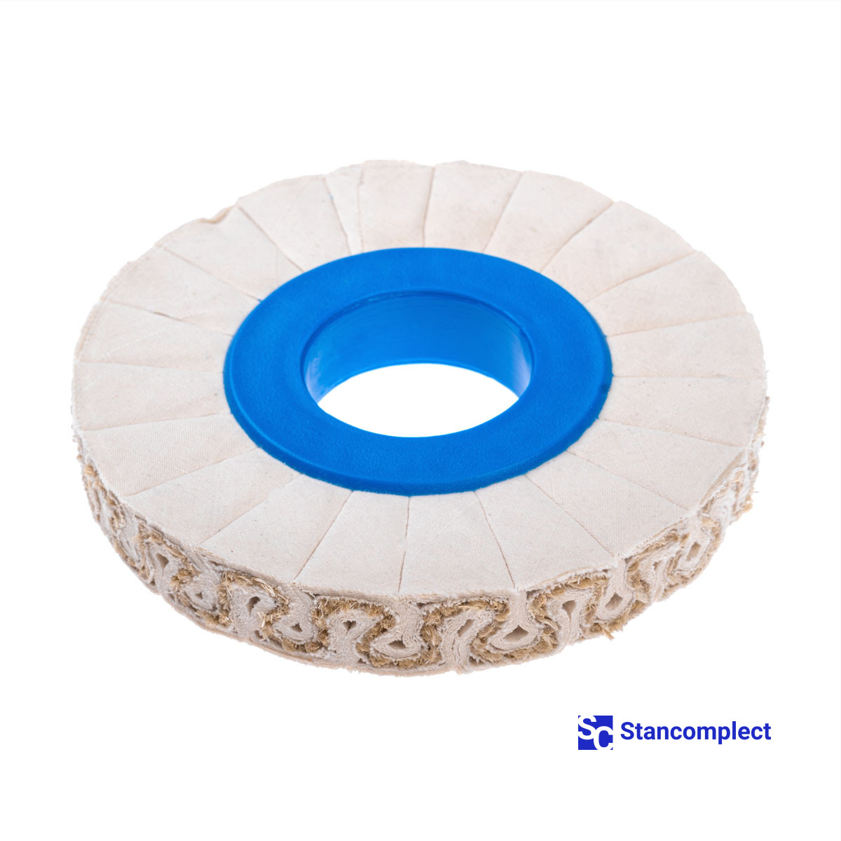 Polishing wheel with bristles 150x50x20 mm with plastic insert for edge banding machines KDT, HOMAG. It is also possible to make polishing wheels under the order according to the sketches of the customer.