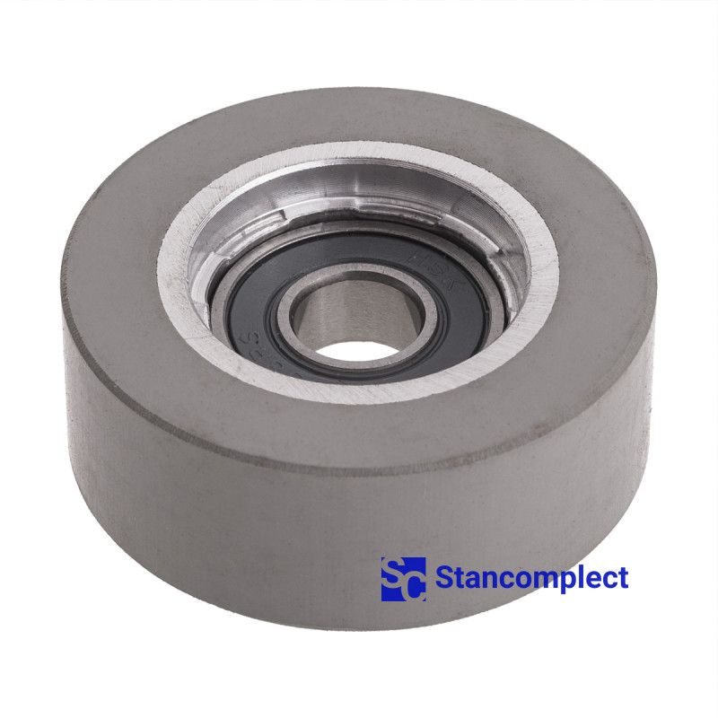 Pressure roller for edge banding machine KDT 37x8x14 mm. Inner diameter - 8 mm. We also manufacture rollers and conveyor overlays under the order according to the drawings of the customer.