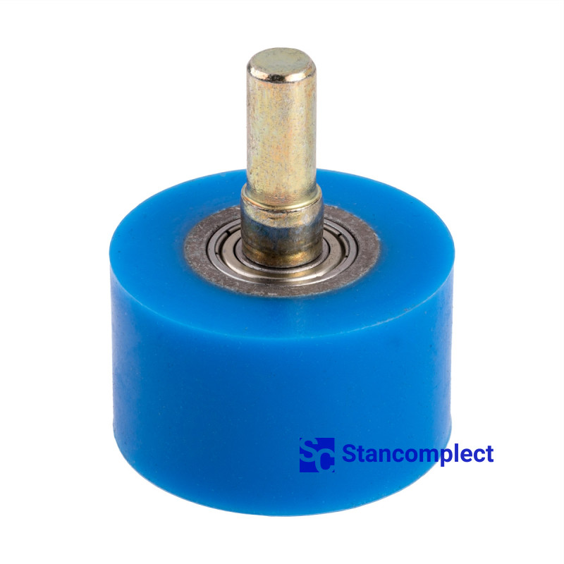 Pressure roller for profile wrapping machine U-509 size 50x30x22 with shaft. The rollers are used on machines for laminating (wrapping) profiles made of MDF, solid wood, chipboard, plastic, aluminum, etc. with rolled finishing materials, such as decorative paper, veneer.