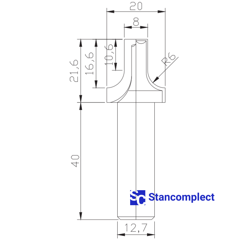 The profile diamond end mill D20 h21.6 d12.7(12) is designed for processing board materials (chipboard, chipboard, MDF, etc.) uncoated and coated, as well as hardwood and is used in CNC machines for the manufacture of furniture facades. The milling cutter is characterized by high reliability and long service life.