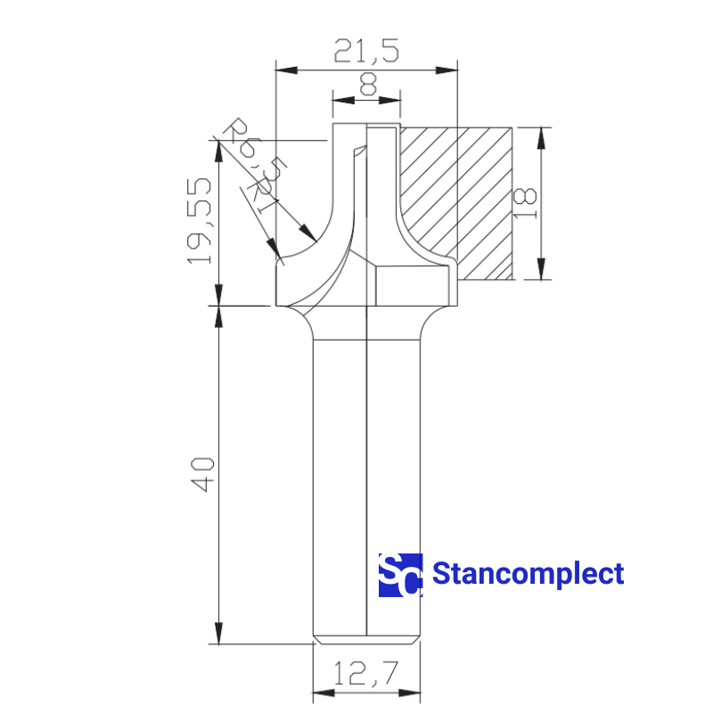 Profile diamond end mill D21.5 h21.5 d12.7(12) is designed for processing board materials (chipboard, chipboard, MDF, etc.) uncoated and coated, as well as hardwood and is used in CNC machines for production of furniture facades. The milling cutter is characterized by high reliability and long service life.