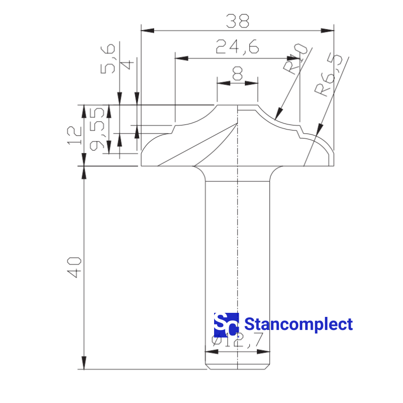 The profile diamond end mill D38 h12 d12.7(12) is designed for processing board materials (chipboard, chipboard, MDF, etc.) uncoated and coated, as well as hardwood and is used in CNC machines for the manufacture of furniture facades. The milling cutter is characterized by high reliability and long service life.
