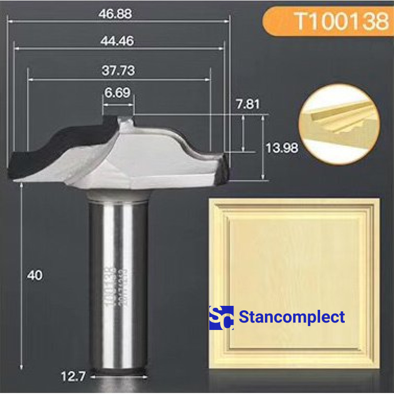 Profile diamond end mill D46.88 h13.98 d12.7(12) is designed for processing board materials (chipboard, chipboard, MDF, etc.) uncoated and coated, as well as hardwood and is used in CNC machines for production of furniture facades. The milling cutter is characterized by high reliability and long service life.