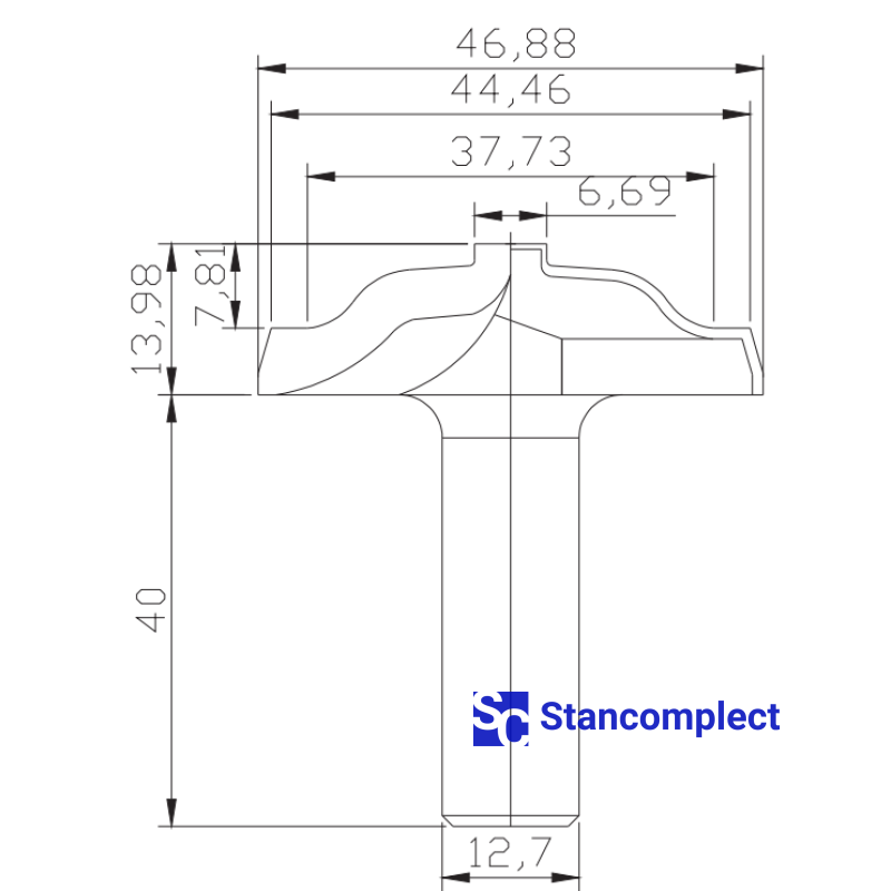 - cutter diameter (D) - 46.88 mm;