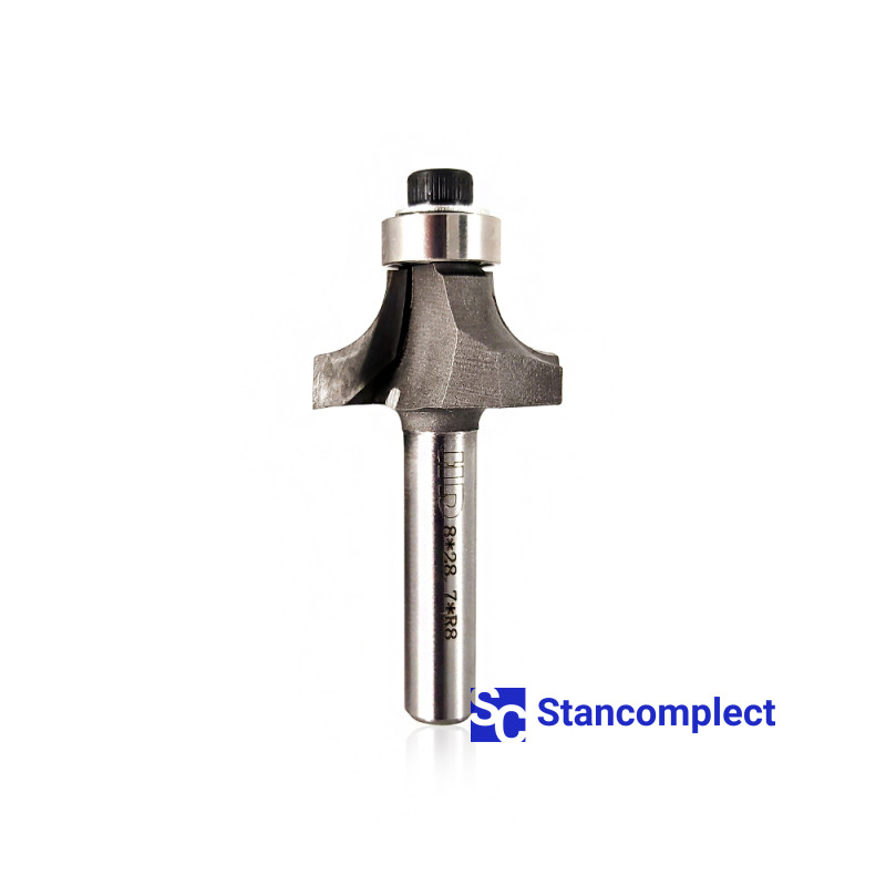 Two flute round over router bit with lower bearing R8-D28,6-l12,7-L53-d8.