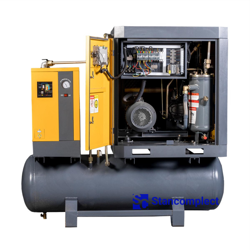 - Small size and low noise level : no separate compressor room required, can be used next to the compressed air consumer;
